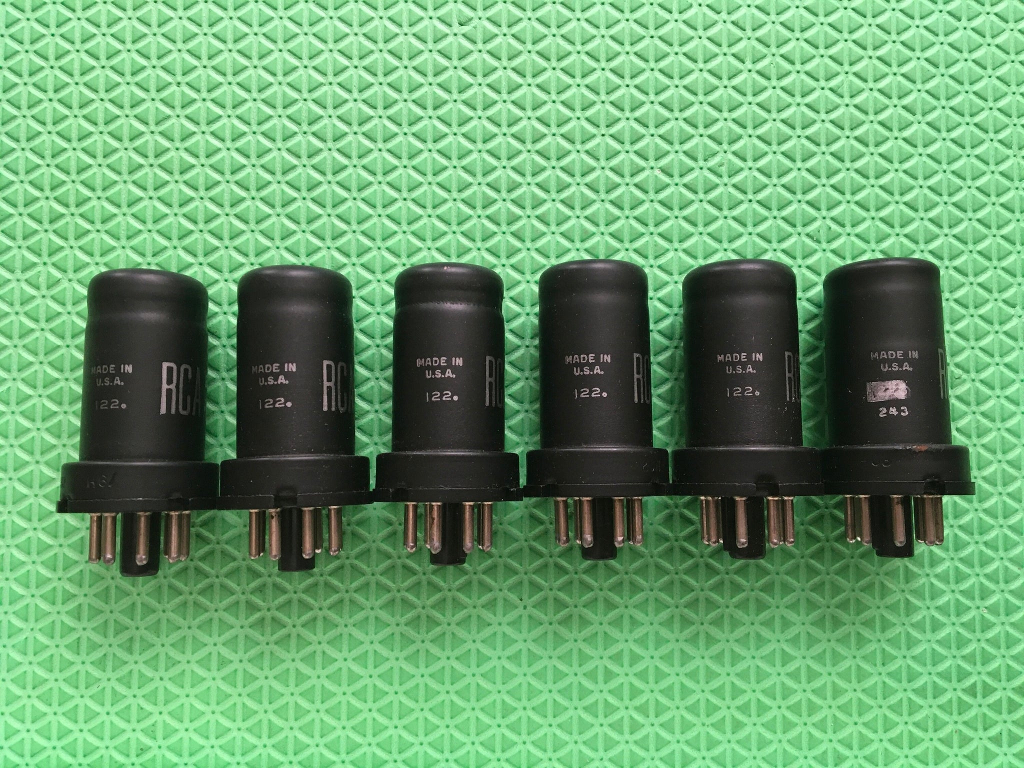 This lot of six new old stock, new in box RCA Radiotron 12SH7 tubes tested to spec on our Paul Hart-calibrated TV7/U.