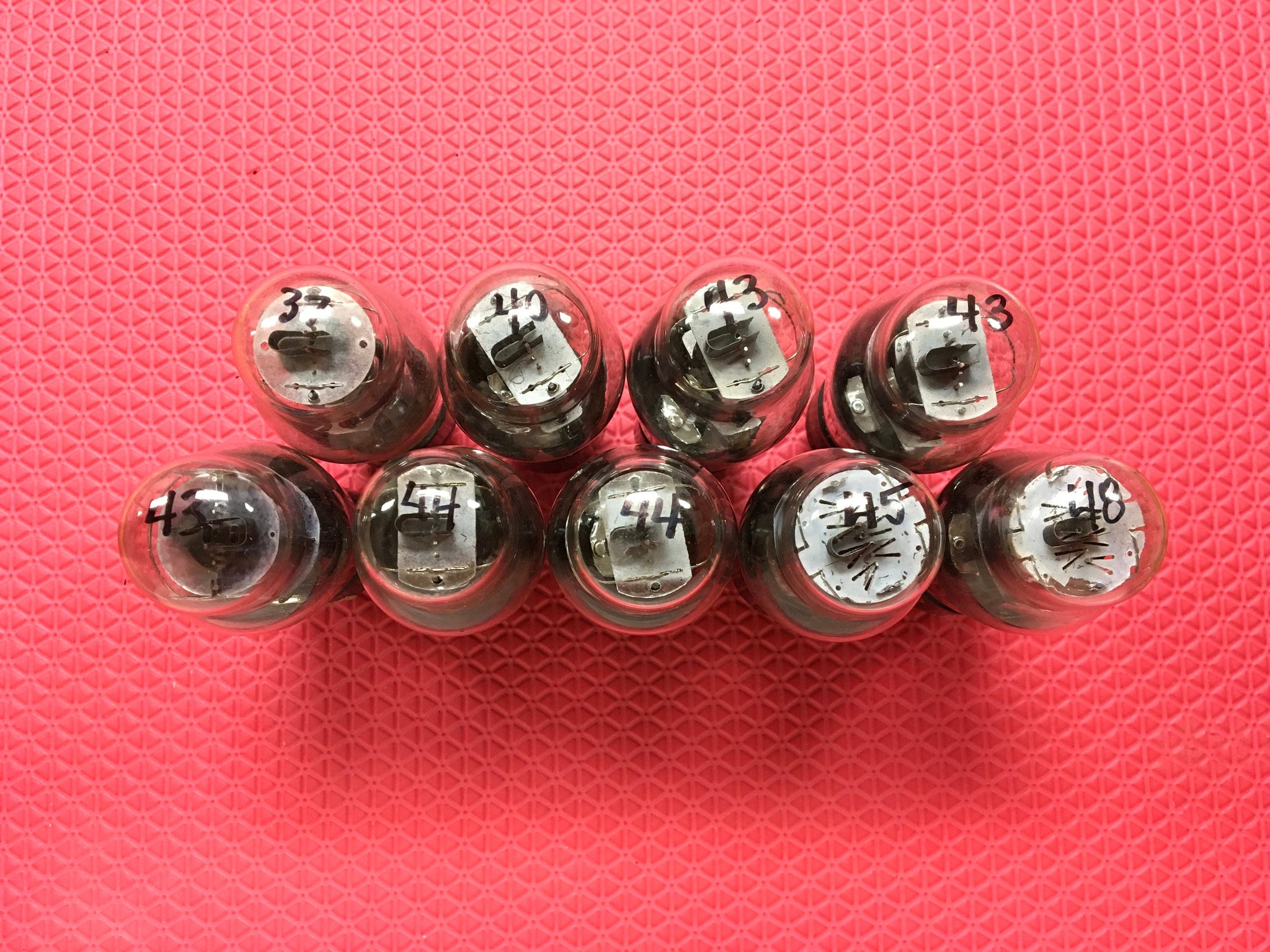 These nine Philco type / number 41 tubes tested as follows on our Paul Hart-calibrated TV7/U: