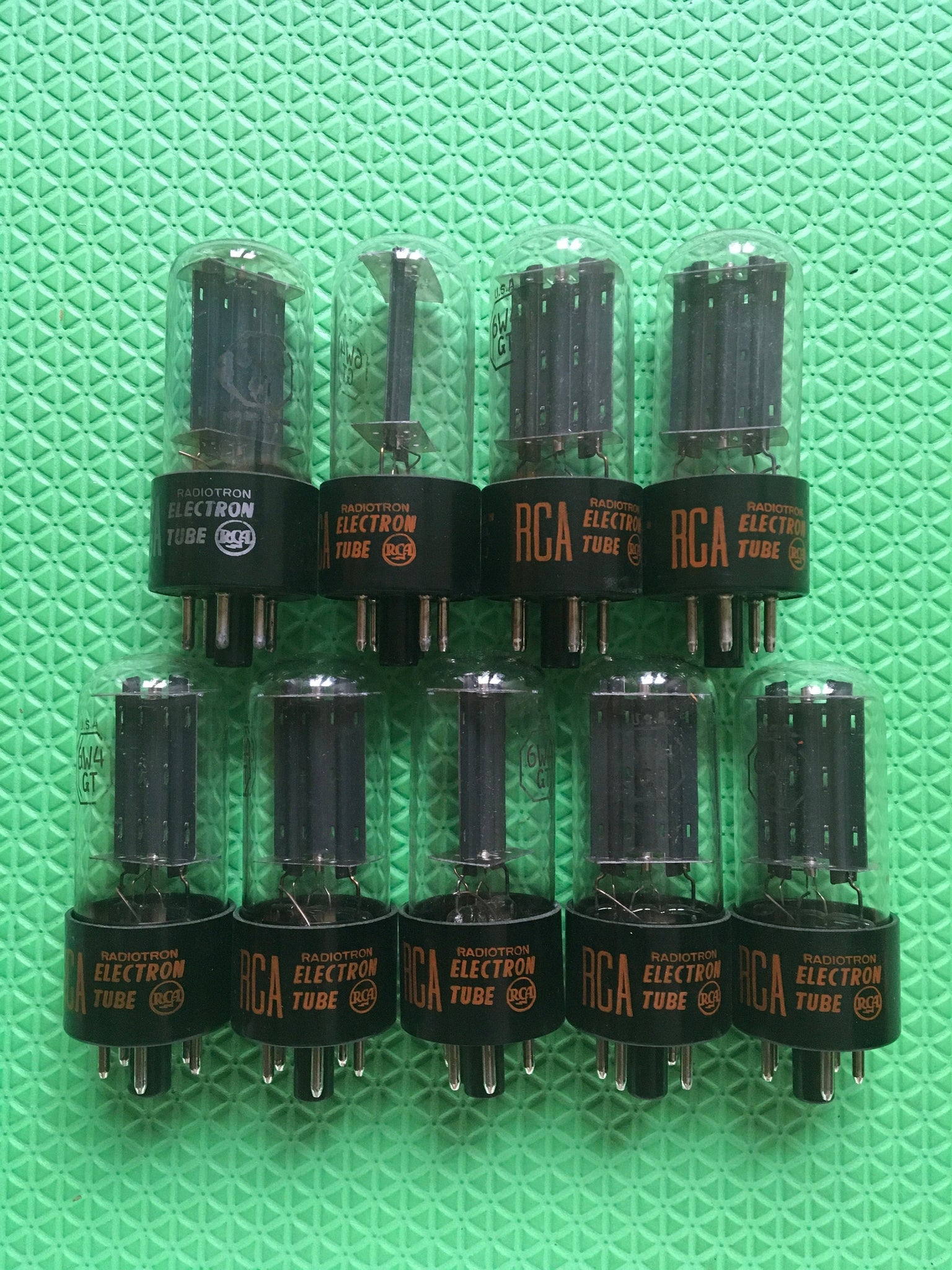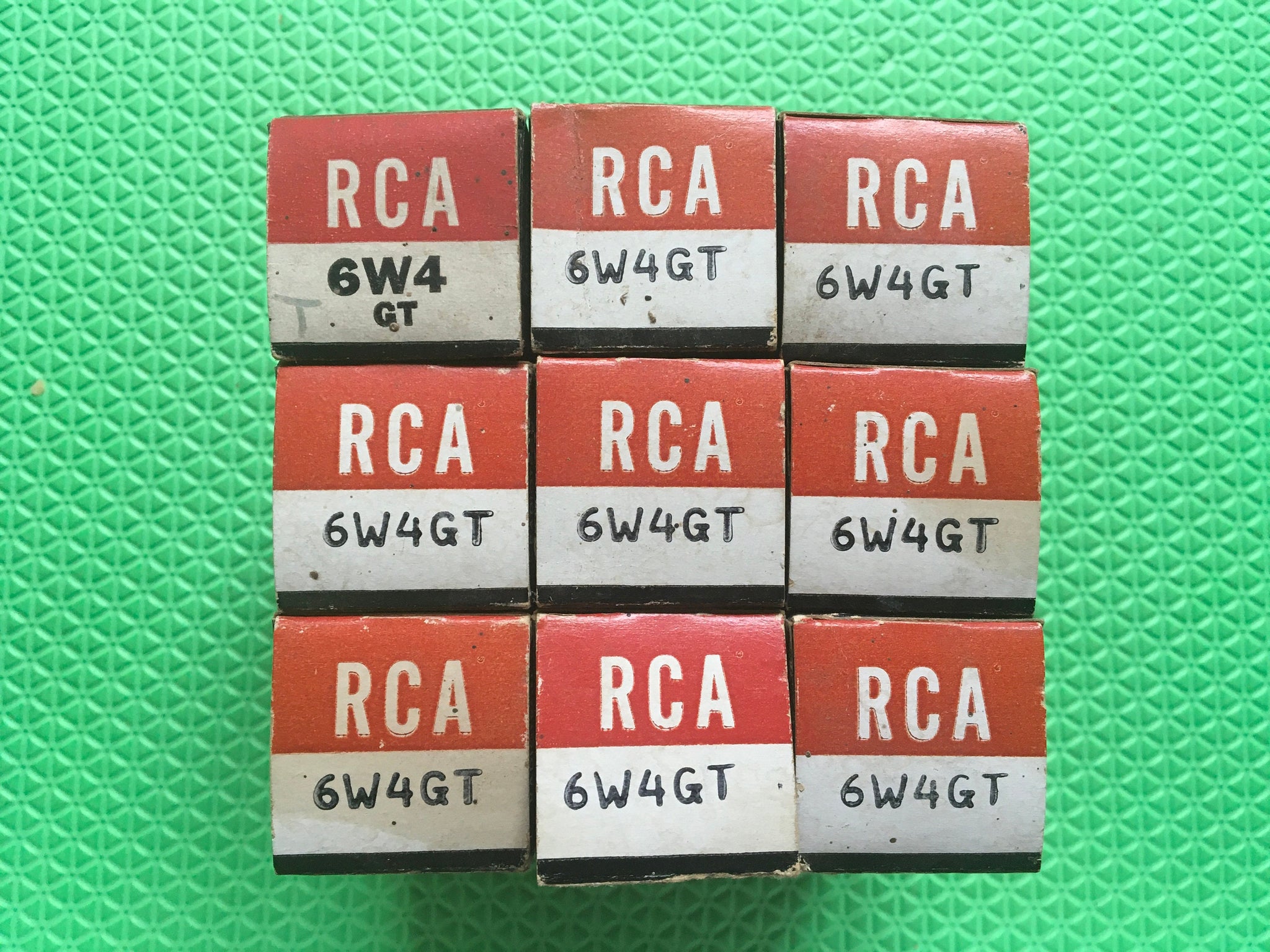 This lot of nine new old stock, new in box RCA 6W4 / 6W4GT tubes tested to spec on our Paul Hart-calibrated TV7/U.