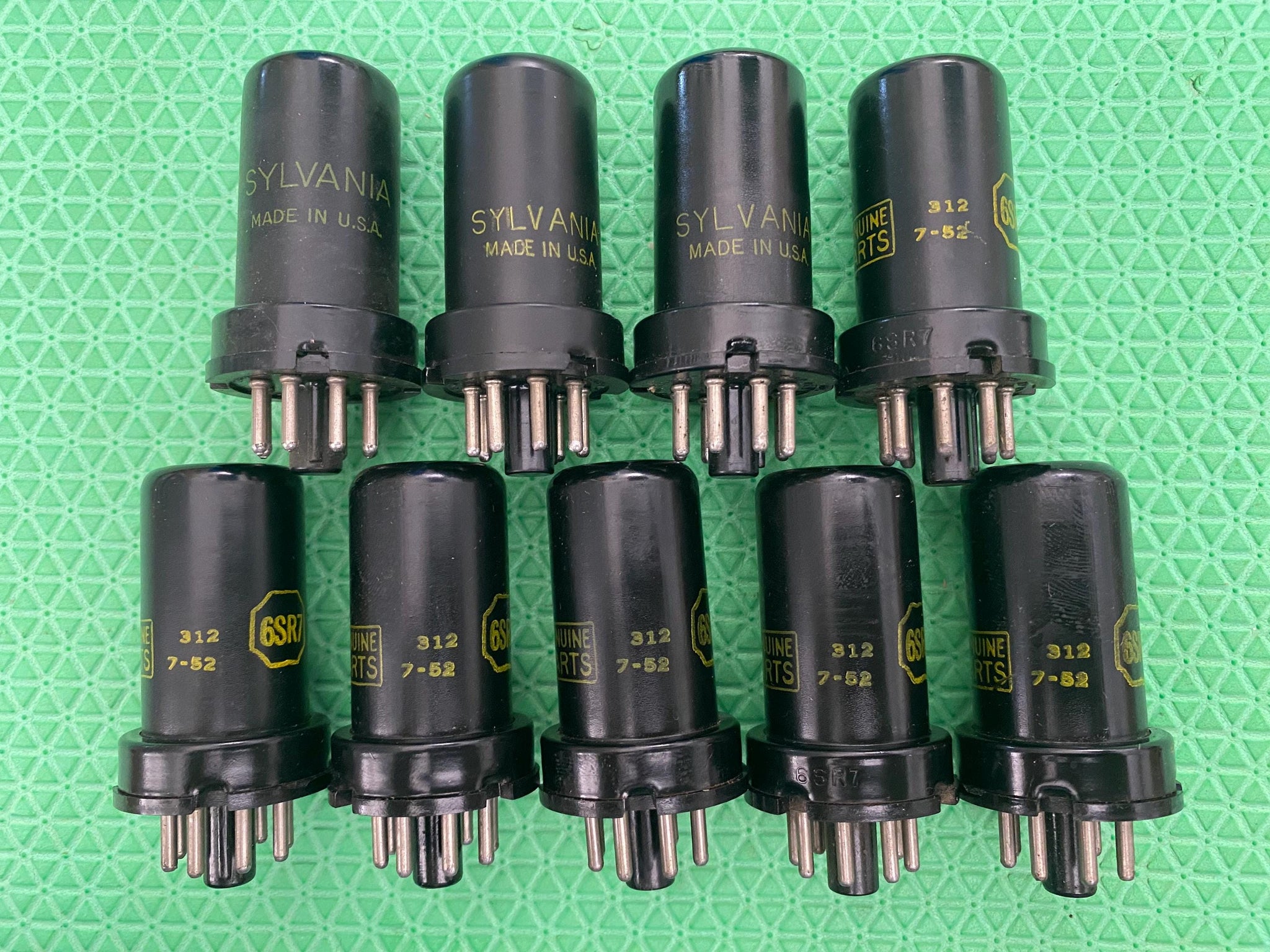 This lot of nine new old stock, new in box Sylvania / Sylvania-MANUFACTURED 6SR7 tubes tested to spec on our Paul Hart-calibrated TV7/U. The GM-LABELED ones all have 312 Sylvania EIA codes.