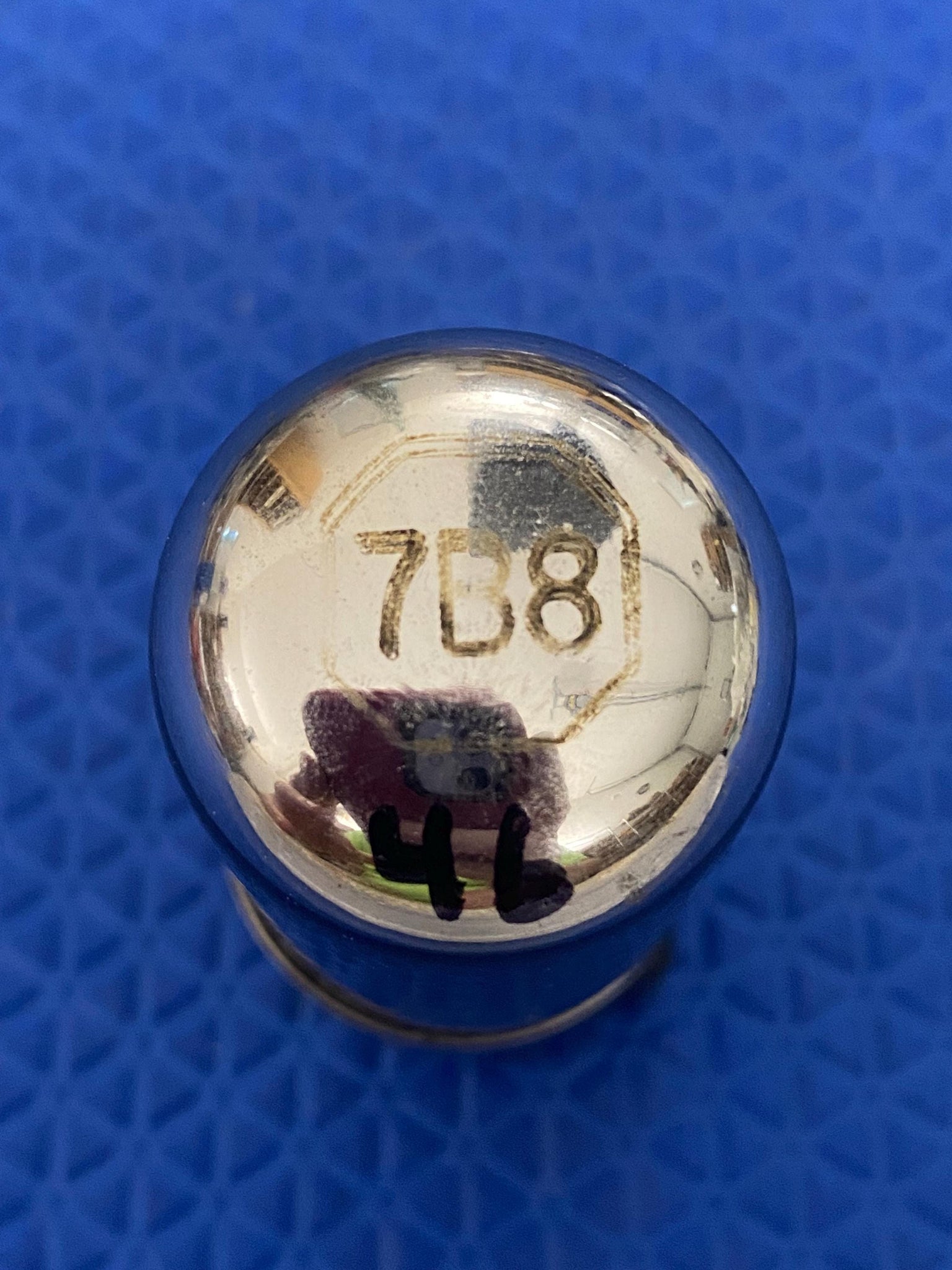 This Delco 7B8 tube tested 46 on our Paul Hart-calibrated TV7/U where minimum (65%) is 29 and 100% is 45.