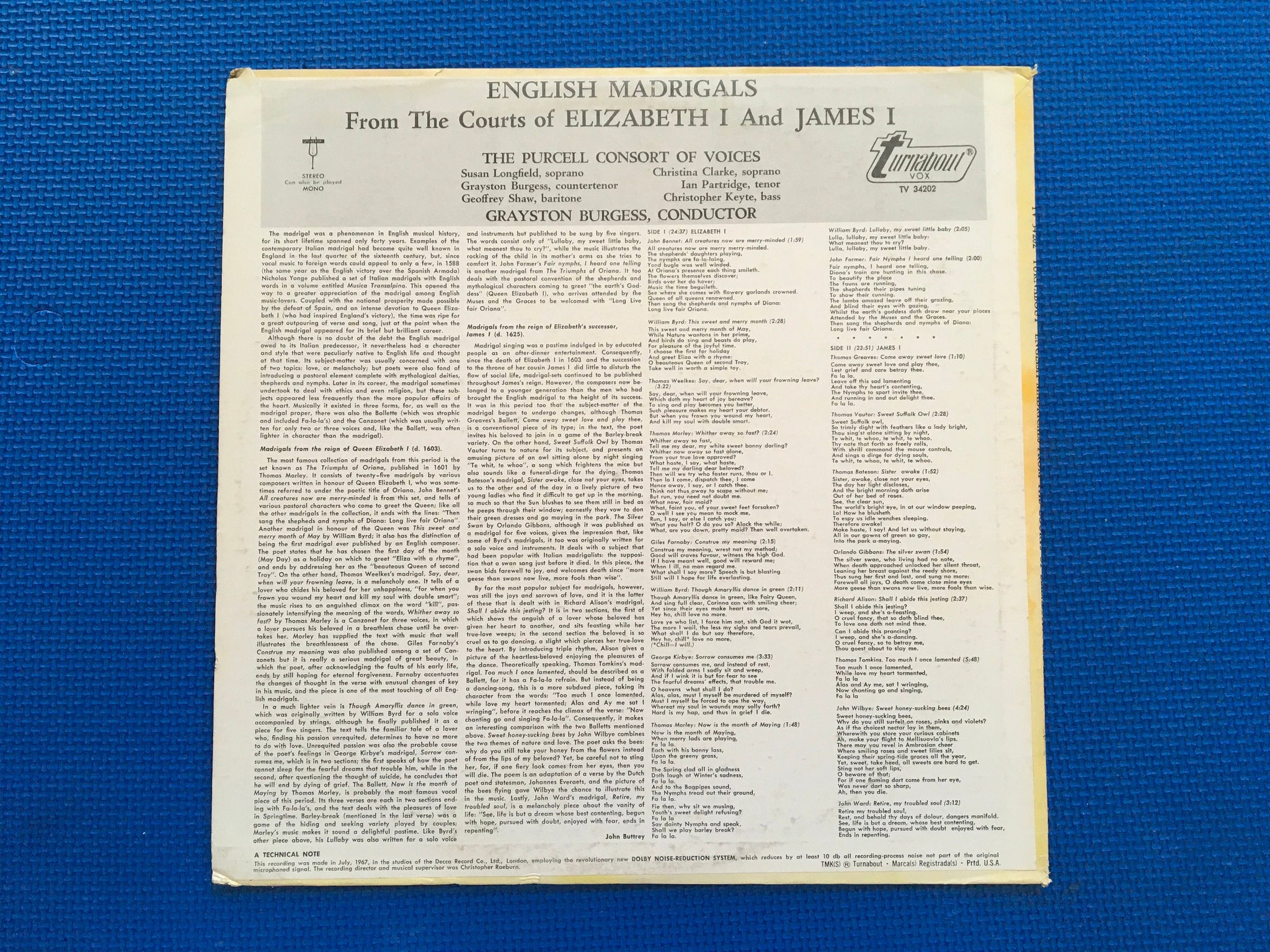 English Madrigals From The Courts Of Elizabeth I And James I The Purcell Consort Of Voices Grayston Burgess Director Turnabout Vox TV 34 202