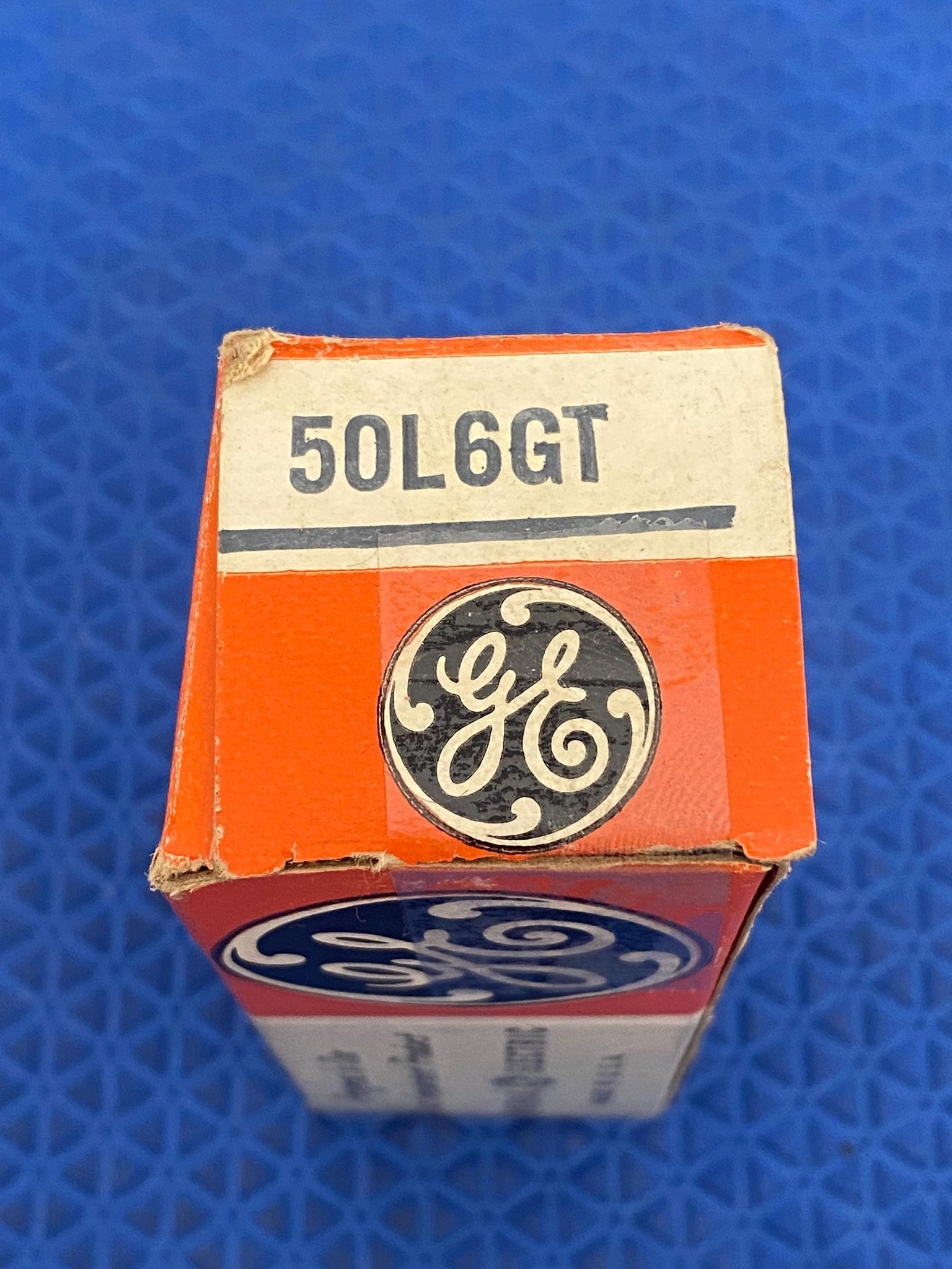 This new old stock, new in box GE 50L6GT rectifier tube tested to spec on our Paul Hart-calibrated TV7/U.