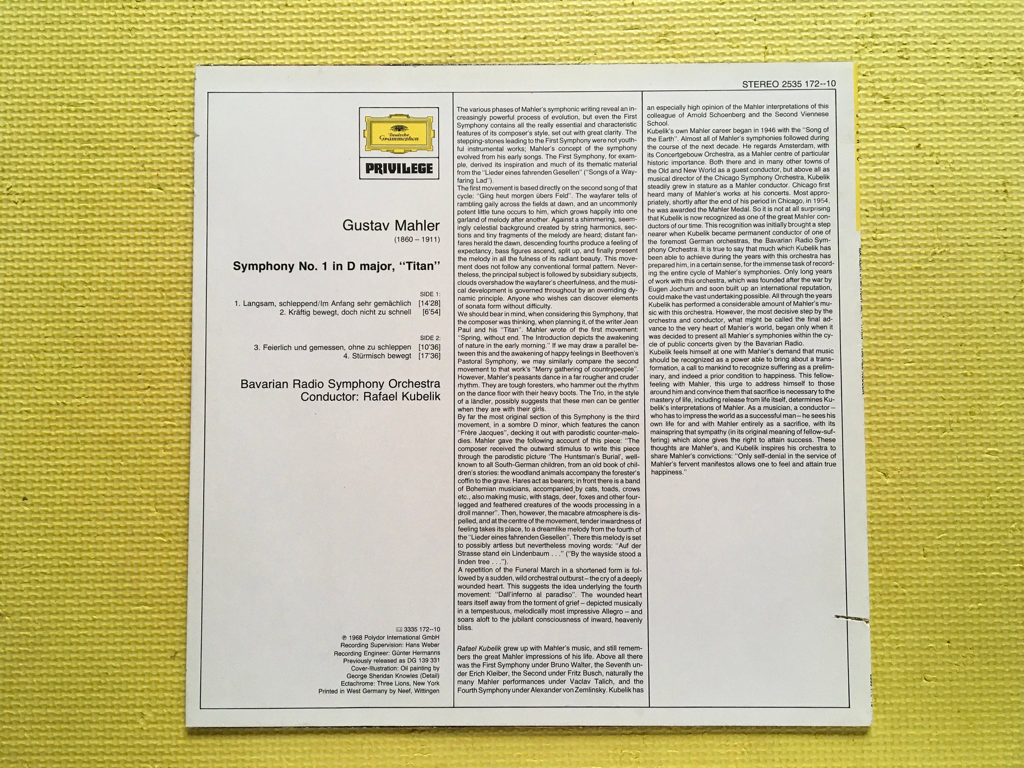 Gustav Mahler Symphony 1 Titan Rafael Kubelik Bavarian Radio Symphony Orchestra Stereo LP Deutsche Grammaphon 2535 172
