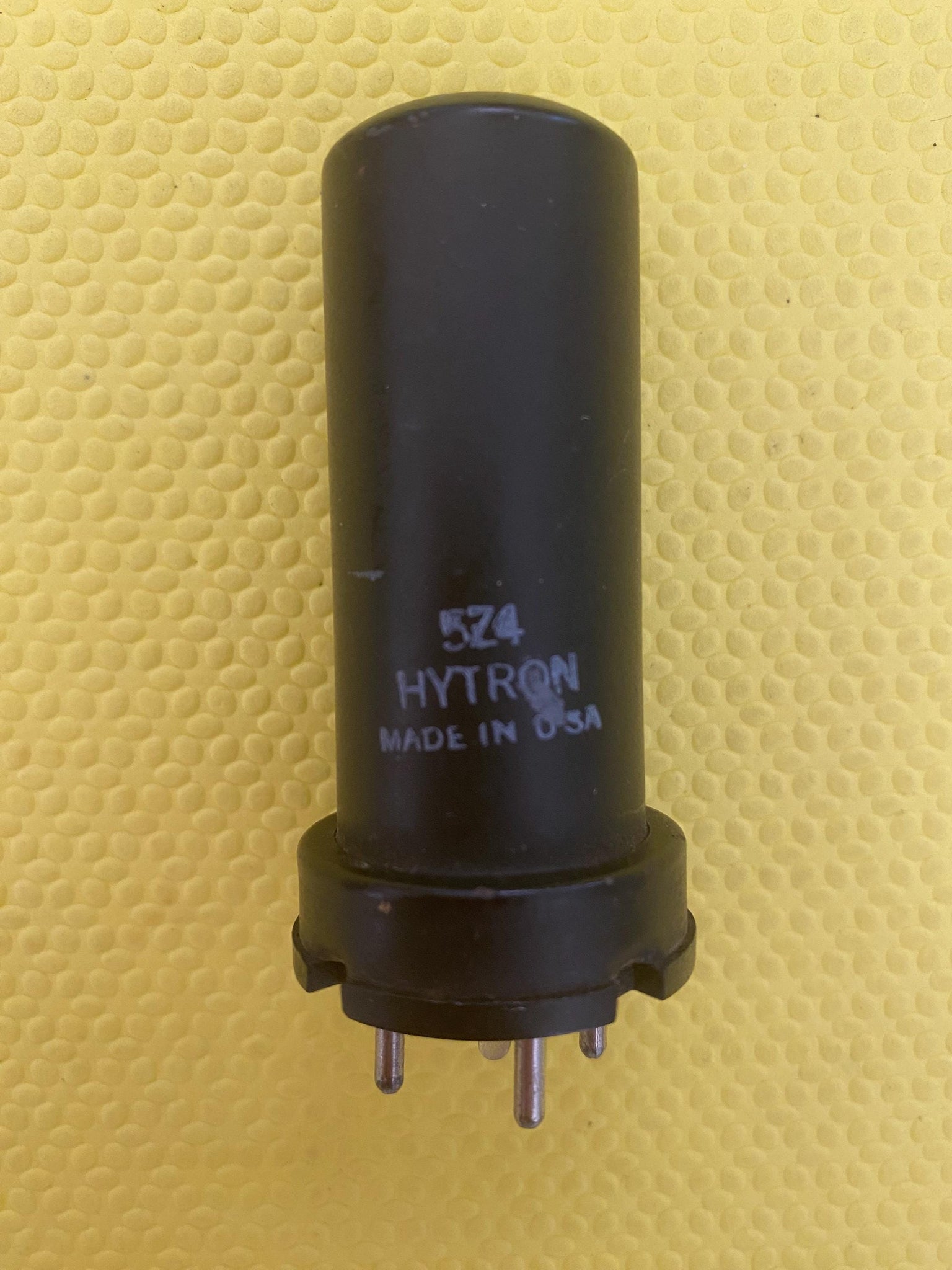 This new old stock-testing Hytron 5Z4 rectifier tube was tested on our Paul Hart-calibrated TV7/U for shorts, gas and emissions.