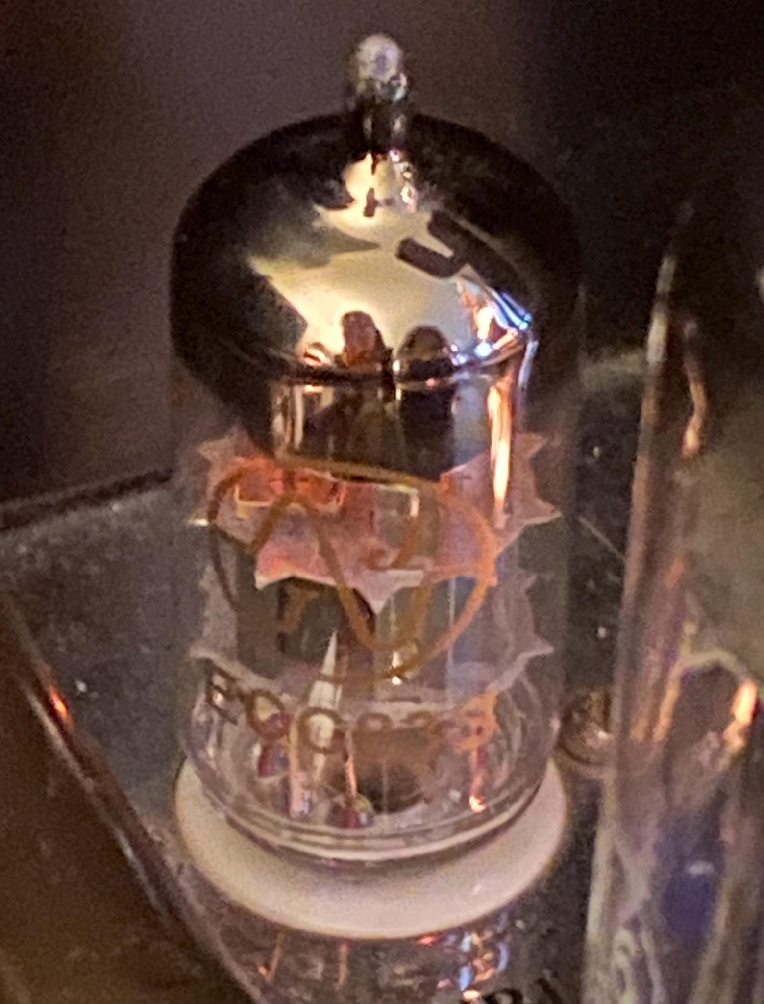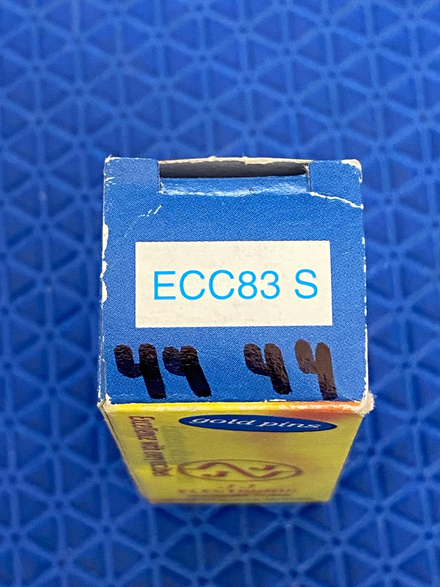 It has excellent silkscreening; excellent flashing and an O getter. Its filaments are spirally-wound -- hence the "S" in "ECC83S" -- for low noise operation.