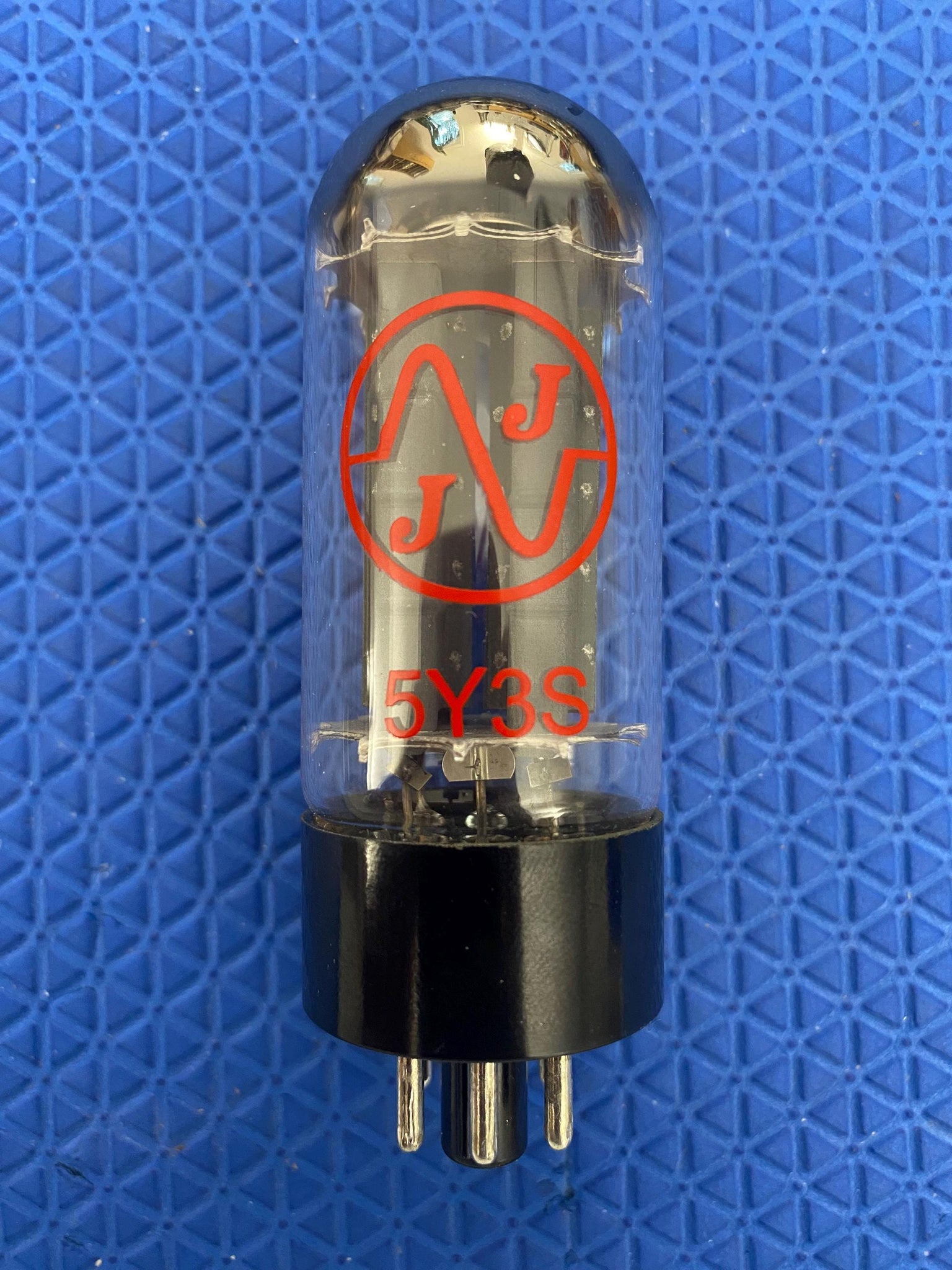 This new old stock, new in box JJ 5Y3S rectifier tube tested 52/51 in Sections One and Two, respectively, on our Paul Hart-calibrated TV7/U where minimum (65%) is 40/40.