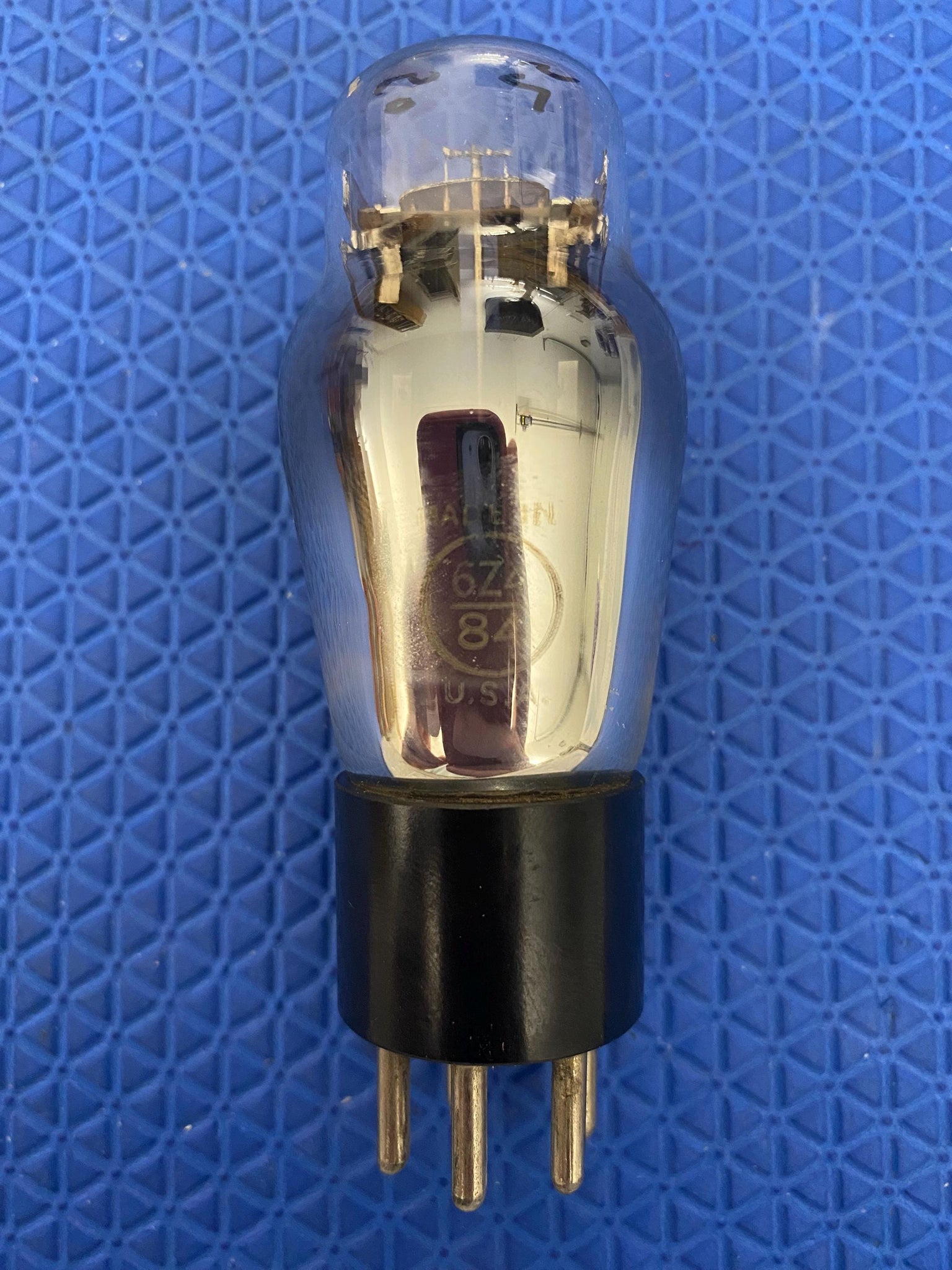 This Ken-Rad 6Z4 / 84 rectifier tested 50/52 on our Paul Hart-calibrated TV7/U where minimum (65%) is 40/40 and 100% is 62/62.