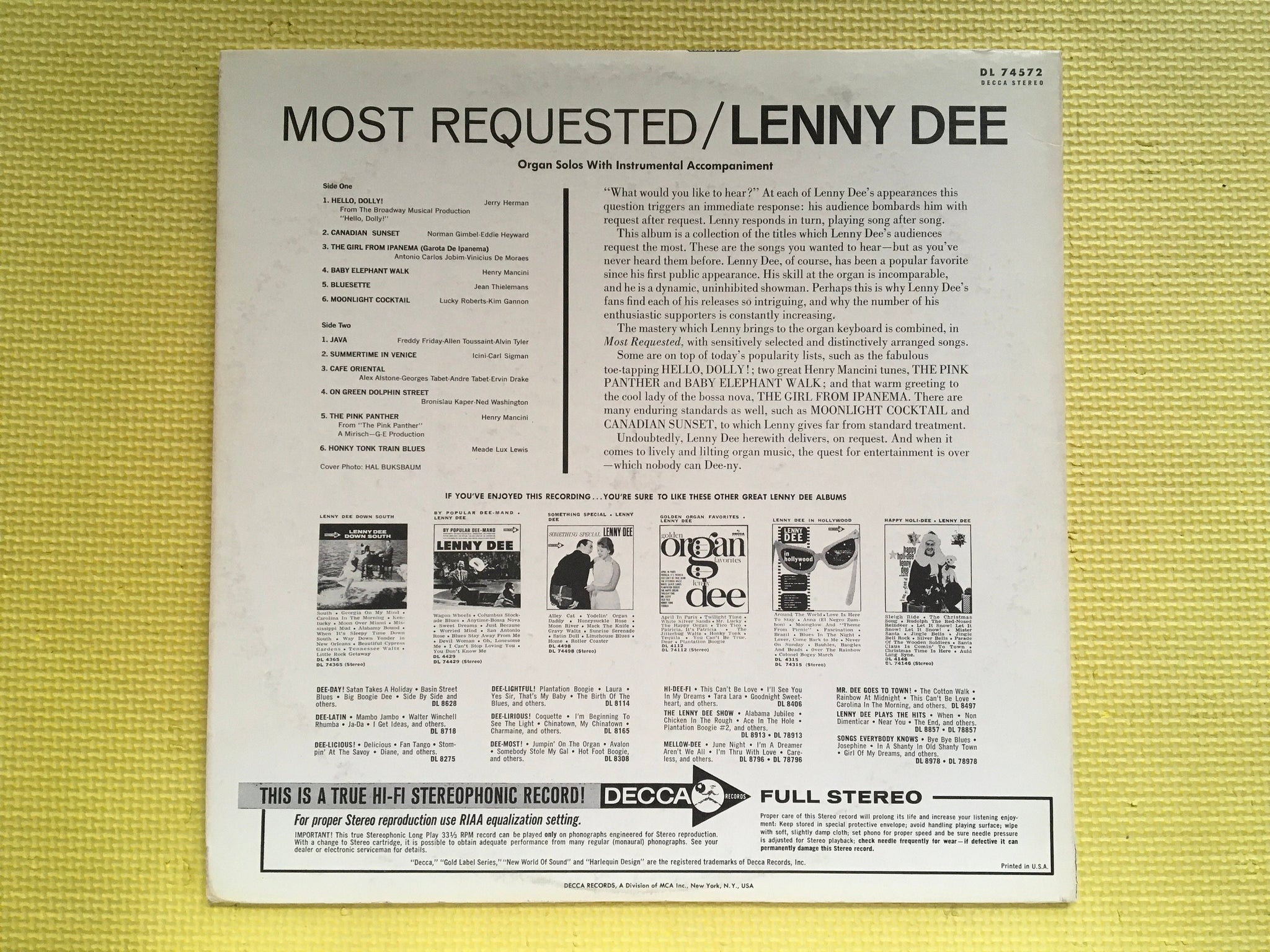Lenny Dee Most Requested! Organ Solos Vinyl LP Decca Stereo DL 74572