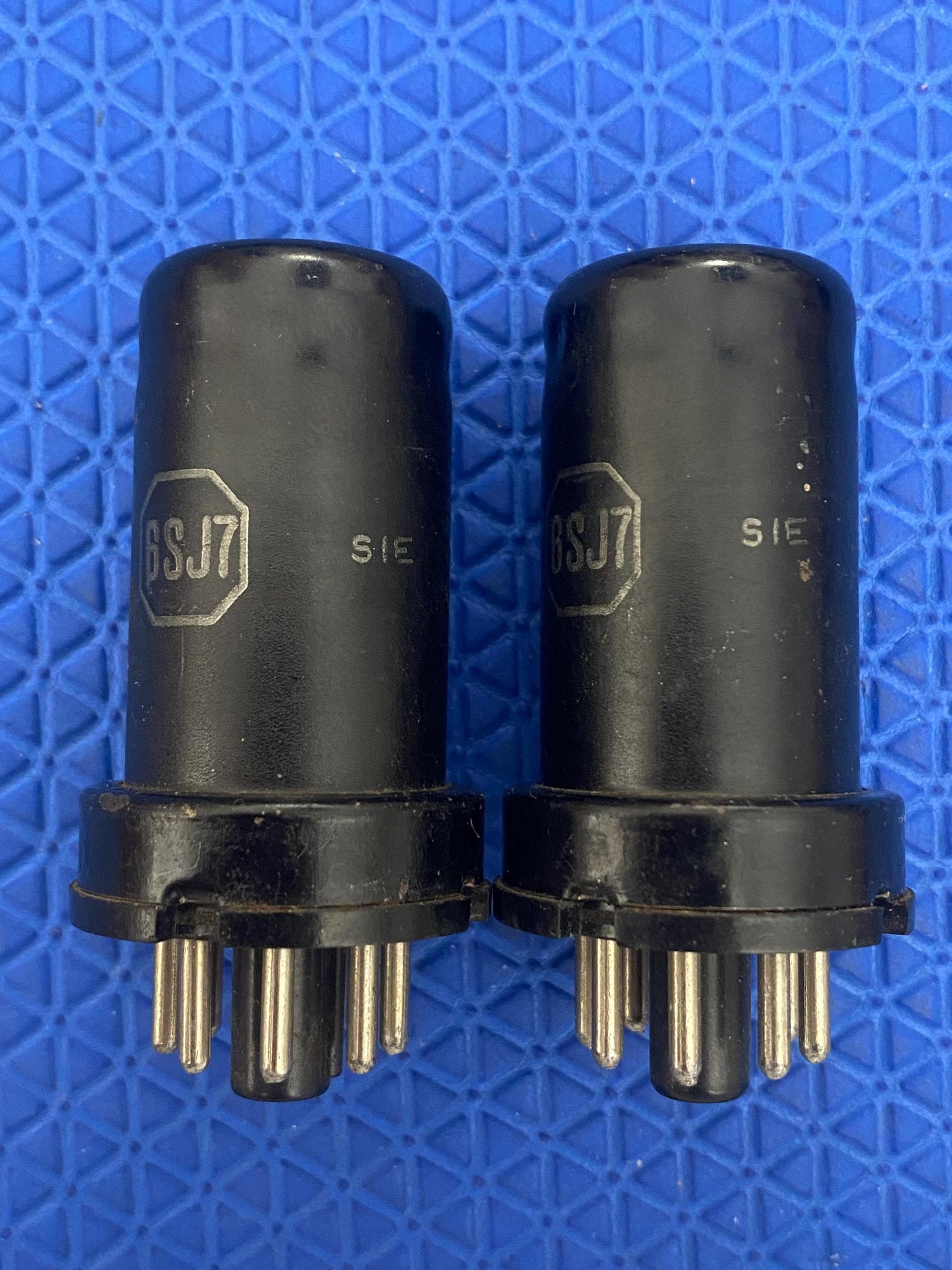 This matched pair of Cunningham 6SJ7 tubes was tested on our on our Paul Hart-calibrated TV7/U for shorts, gas and transconductance. There were no shorts or gas.