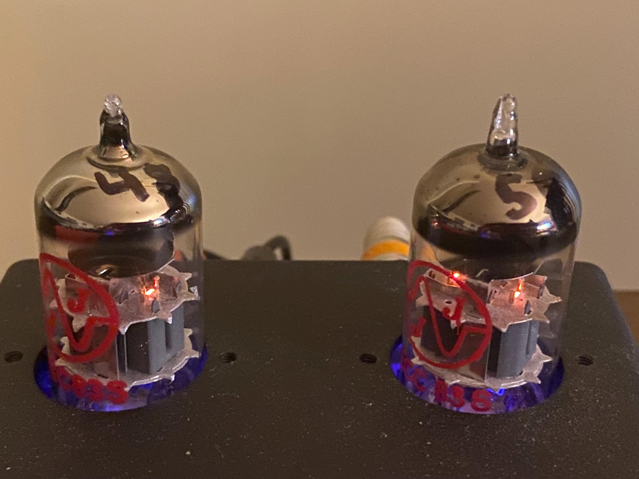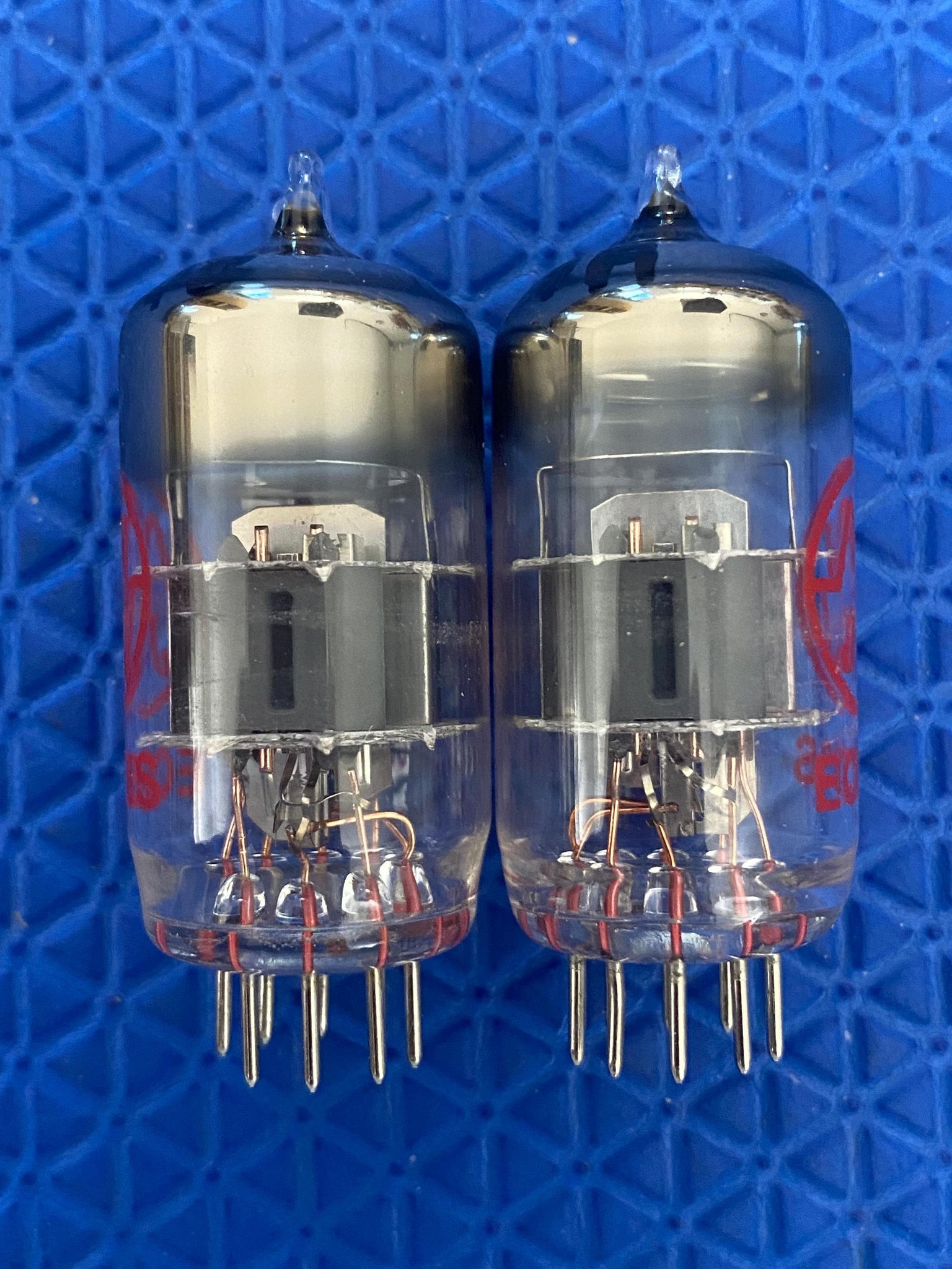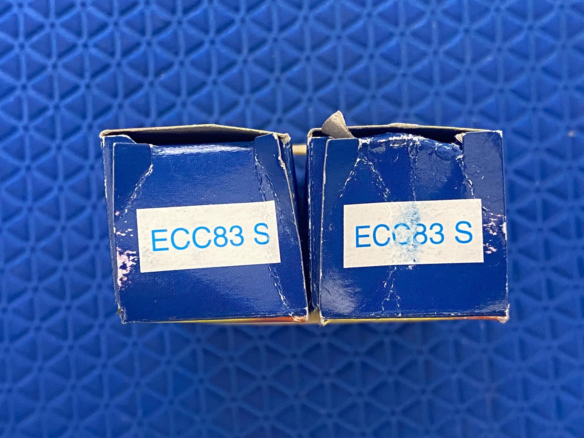 These tubes have excellent silkscreening; excellent flashing and O getters. Their filaments are spirally-wound -- hence the "S" in "ECC83S" -- for low noise operation.