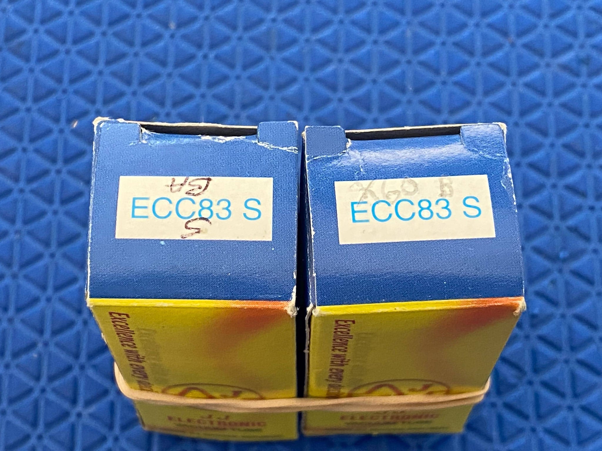 These tubes have excellent silkscreening; excellent flashing and O getters. Their filaments are spirally-wound -- hence the "S" in "ECC83S" -- for low noise operation.
