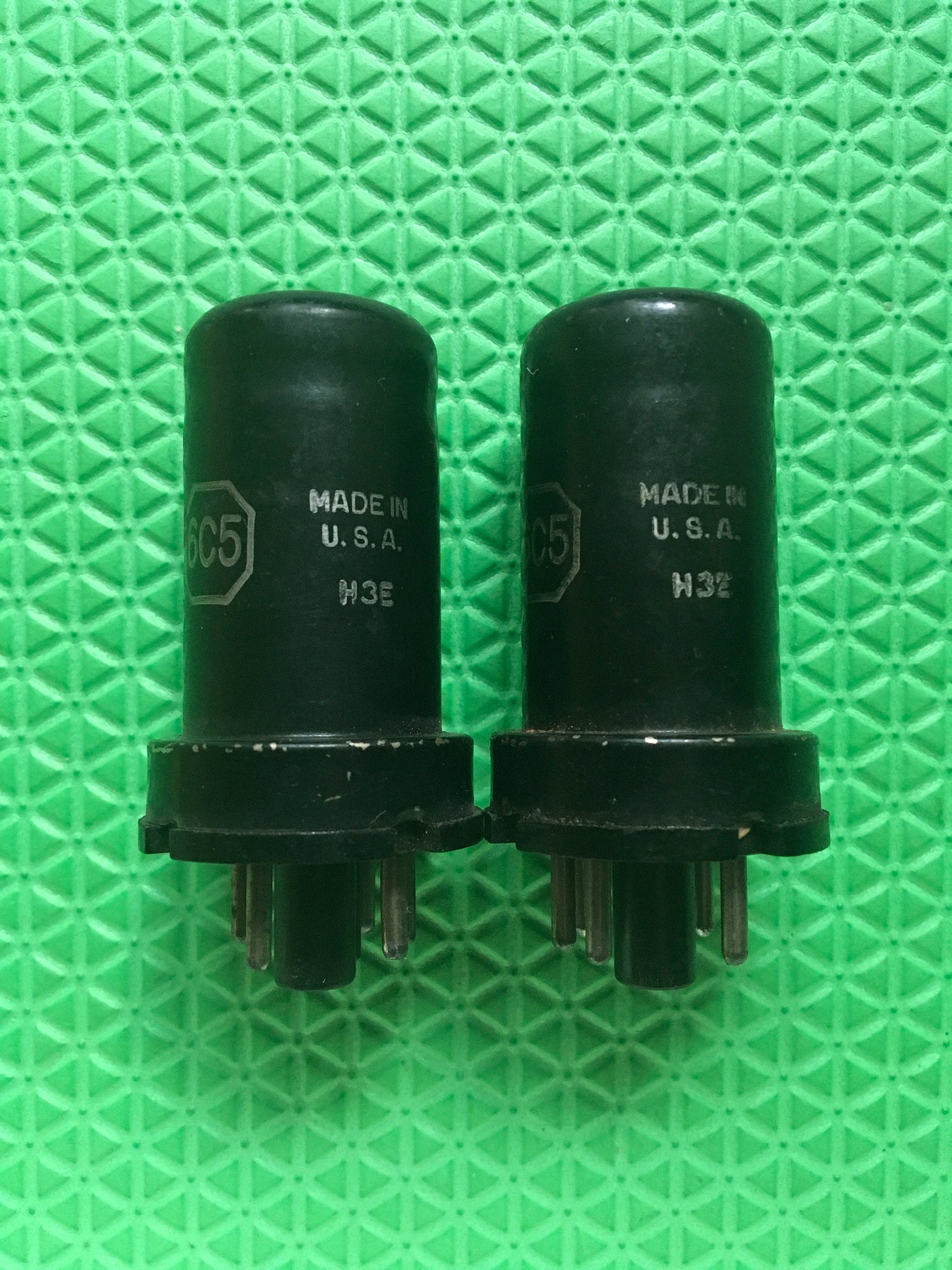 This matched pair of RCA 6C5 triodes was tested on our Paul Hart-calibrated TV7/U for shorts, gas, microphonics and transconductance. There were no shorts or gas.