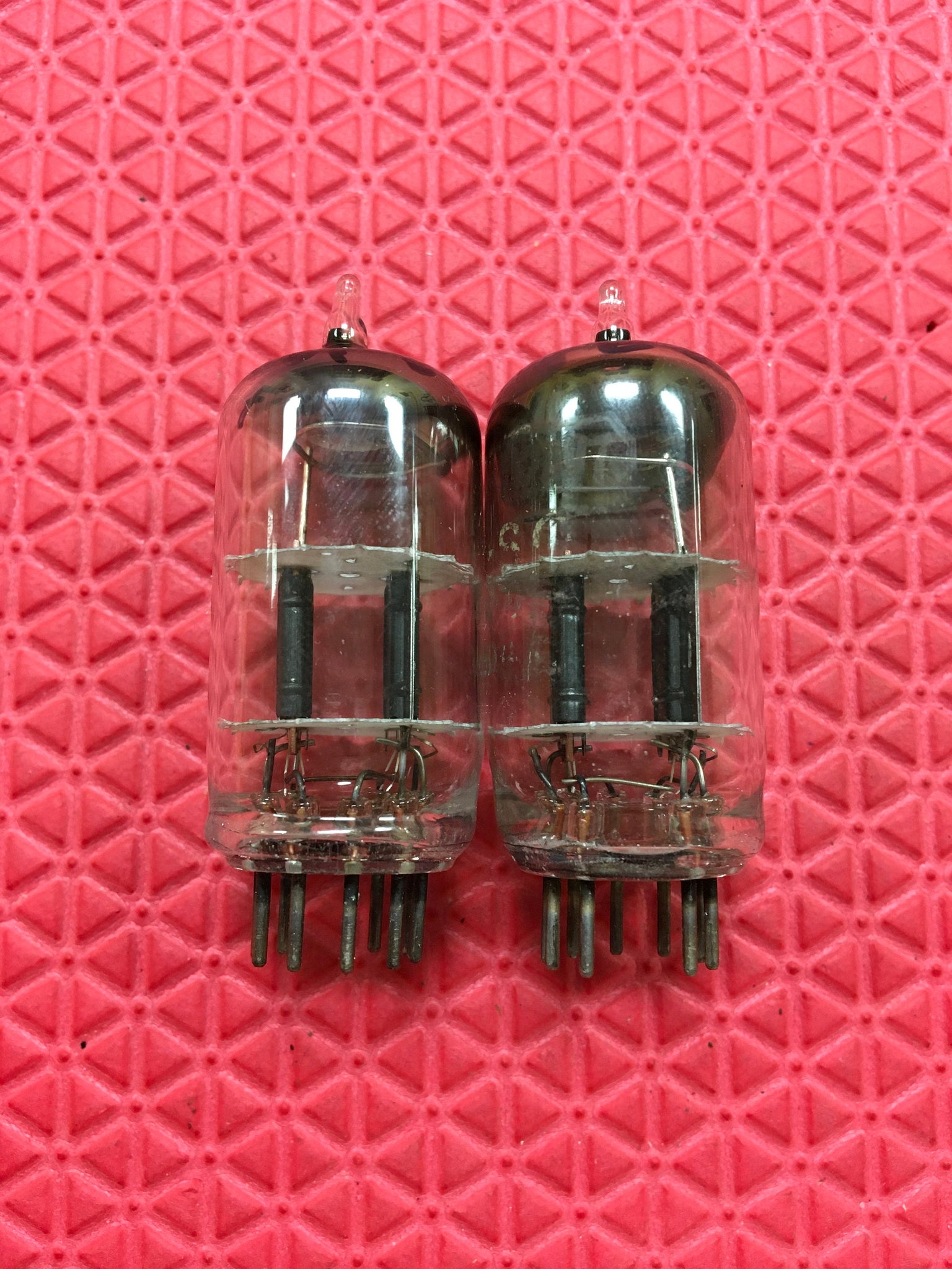 These tubes have copper support rods; a lyre getter black plates and excellent flashing.