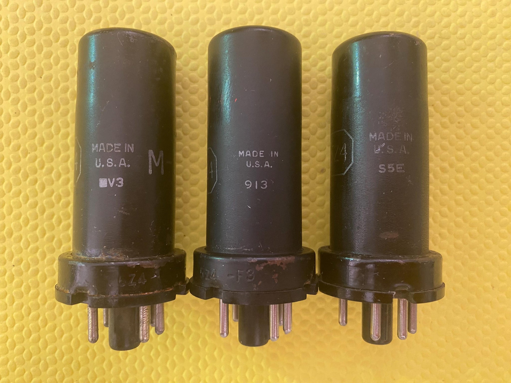This matched trio of RCA 5Z4 rectifier tubes were tested on our Paul Hart-calibrated TV7/U for shorts, gas and emissions.