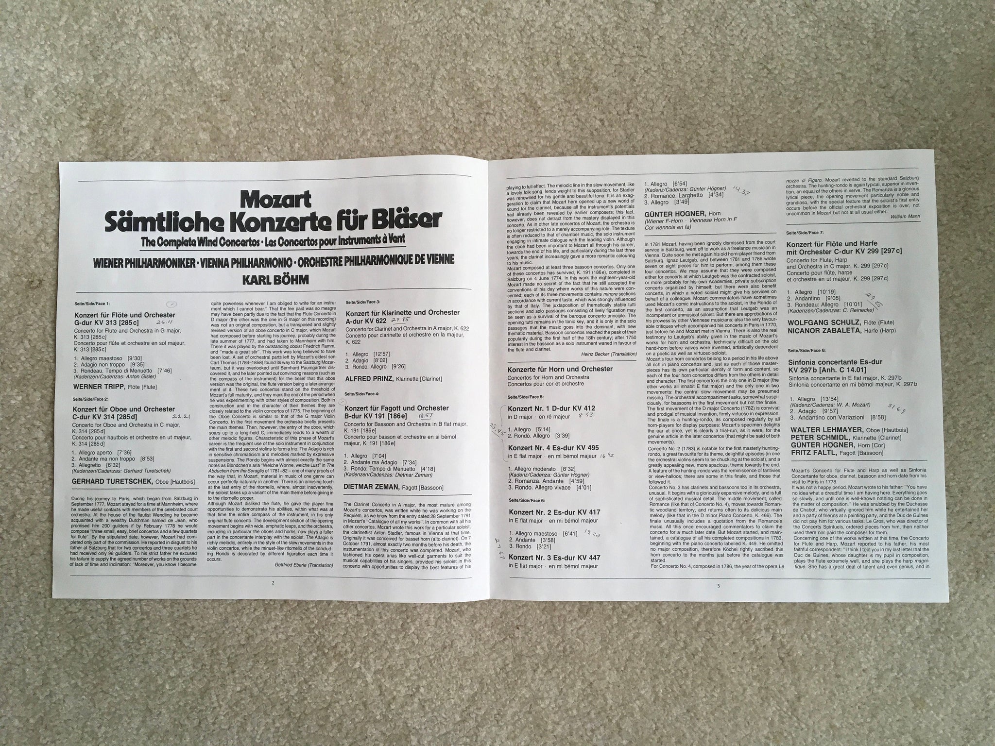 Mozart Sämtliche Konzerte Für Bläser Complete Wind Concertos Karl Böhm Vienna Philharmonic 4 LP Set Deutsche Grammaphon