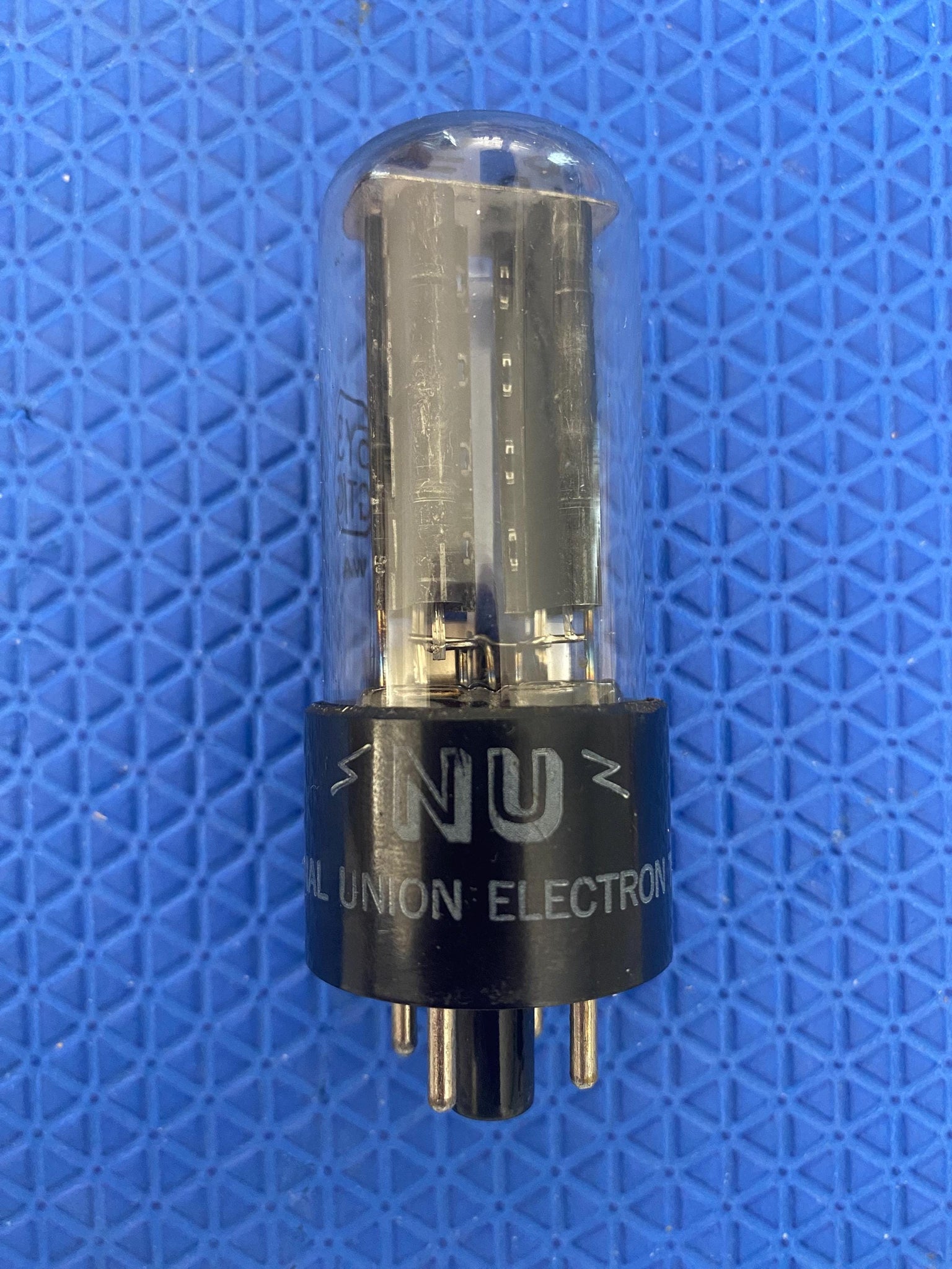 This National Union 5Y3GT rectifier tube tested 50 in Section One and 45 in Section Two on our Paul Hart-calibrated TV7/U tube tester where minimum (65%) is 40/40 and 100% is 62/62.