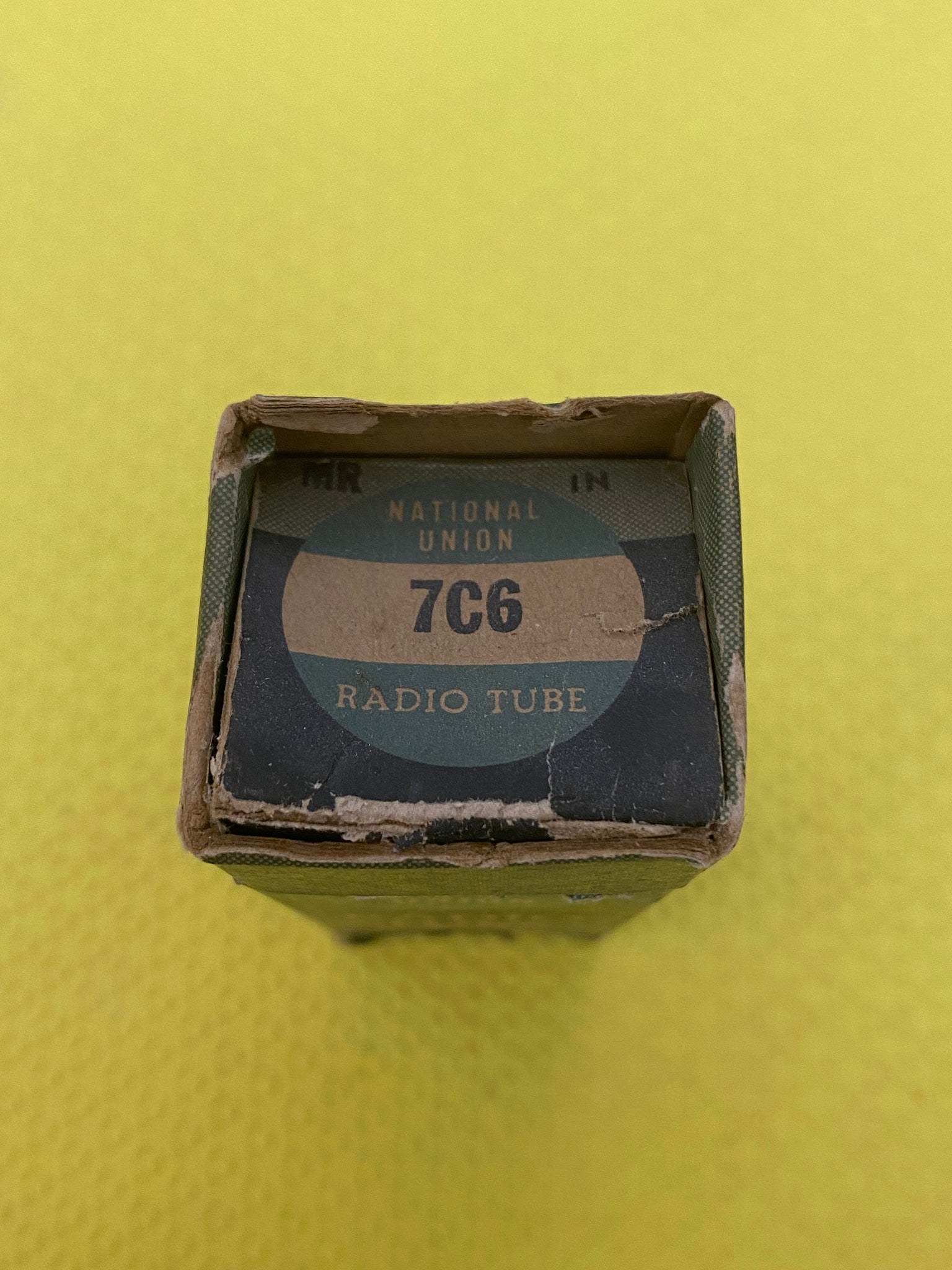 This new old stock, new in box National Union 7C6 tube -- and another just like it -- tested to spec on our Paul Hart-calibrated TV7/U.
