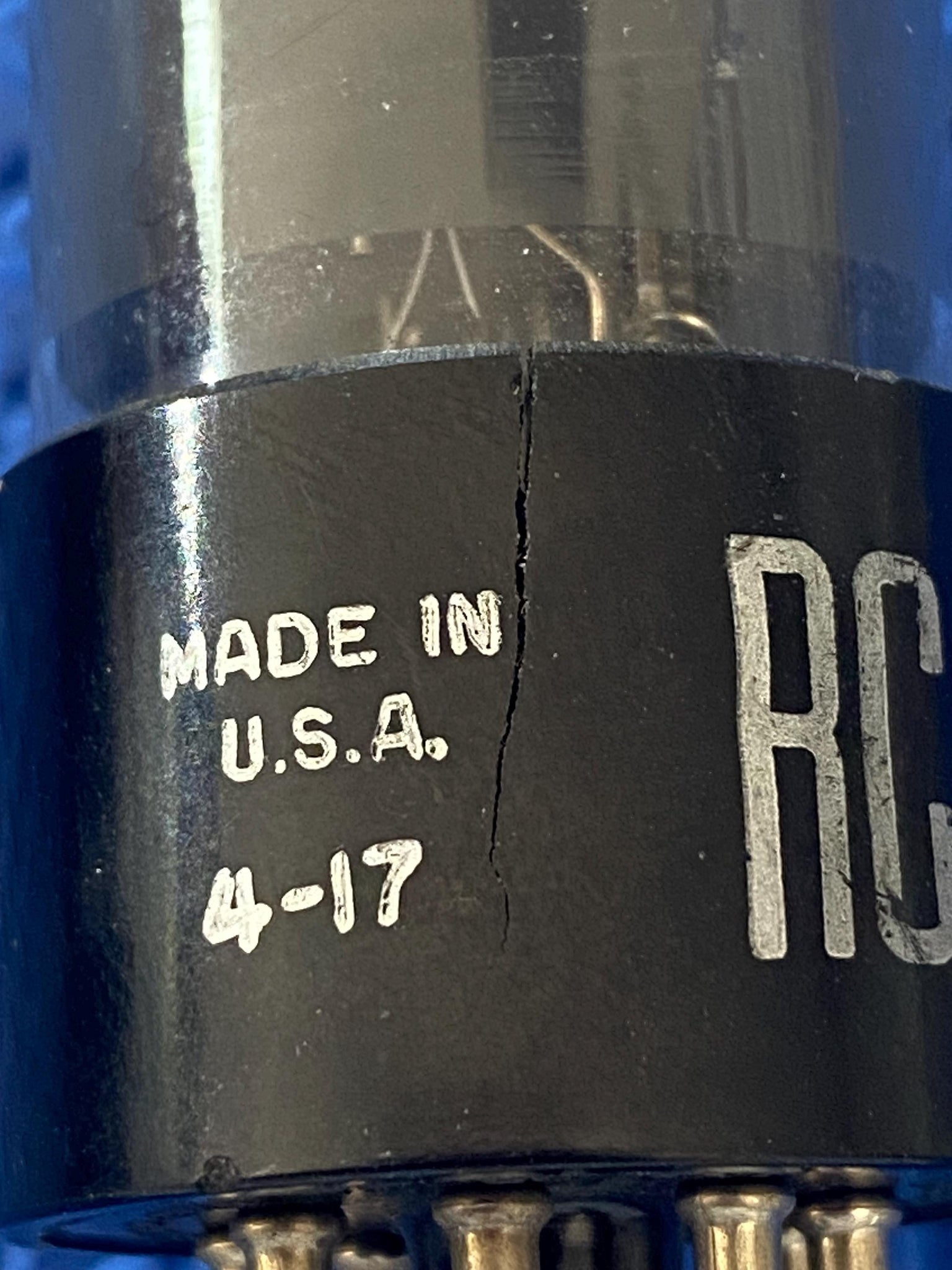These tubes have gray coated bottles; black plates and bottom, D getters. Tube Two has a narrow crack in its base which, nonetheless, is firmly adhered to the tube's bottle. Please see Picture Four.