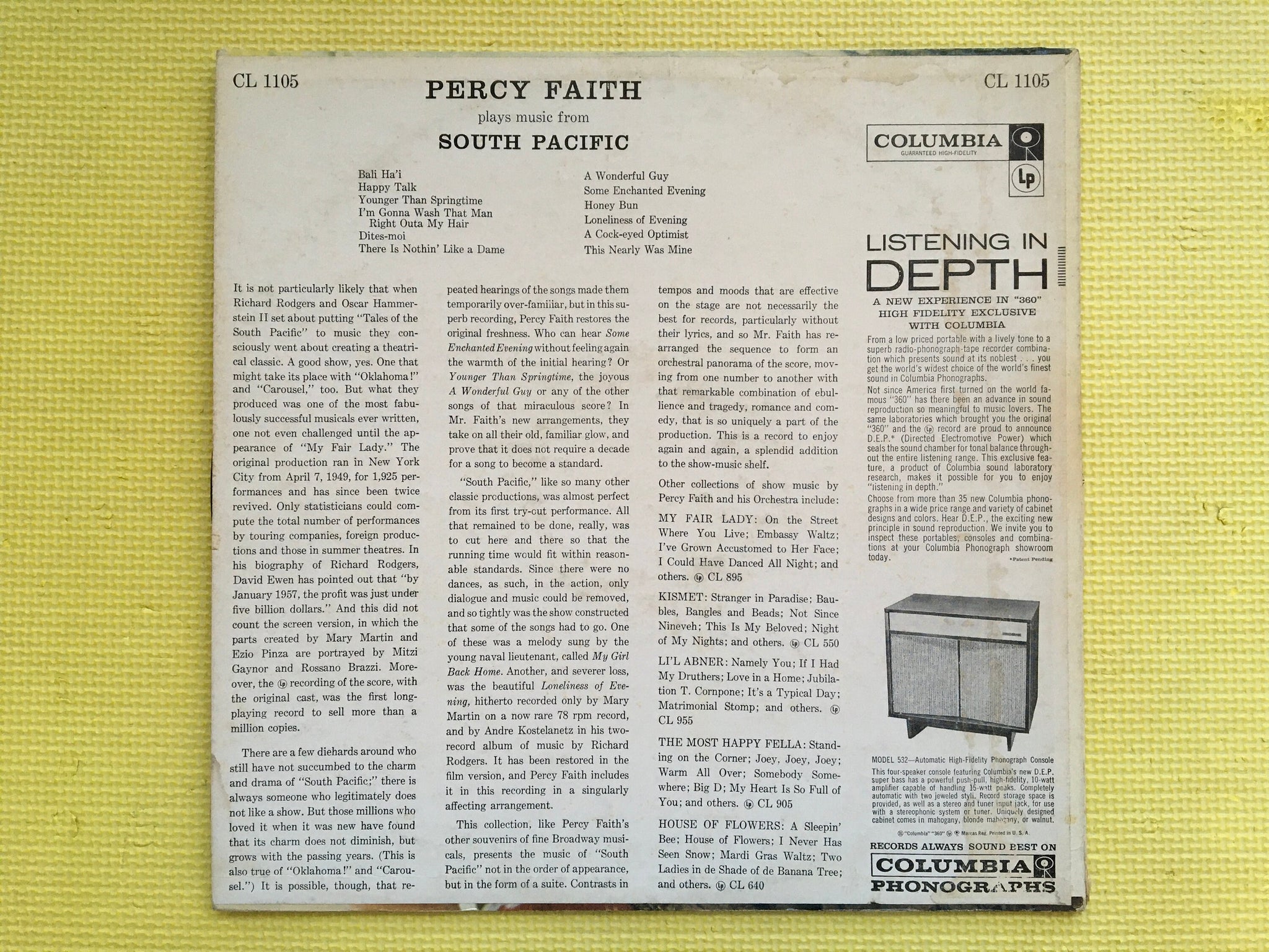 Percy Faith Plays Music From South Pacific Vinyl LP Columbia Records CL 1105