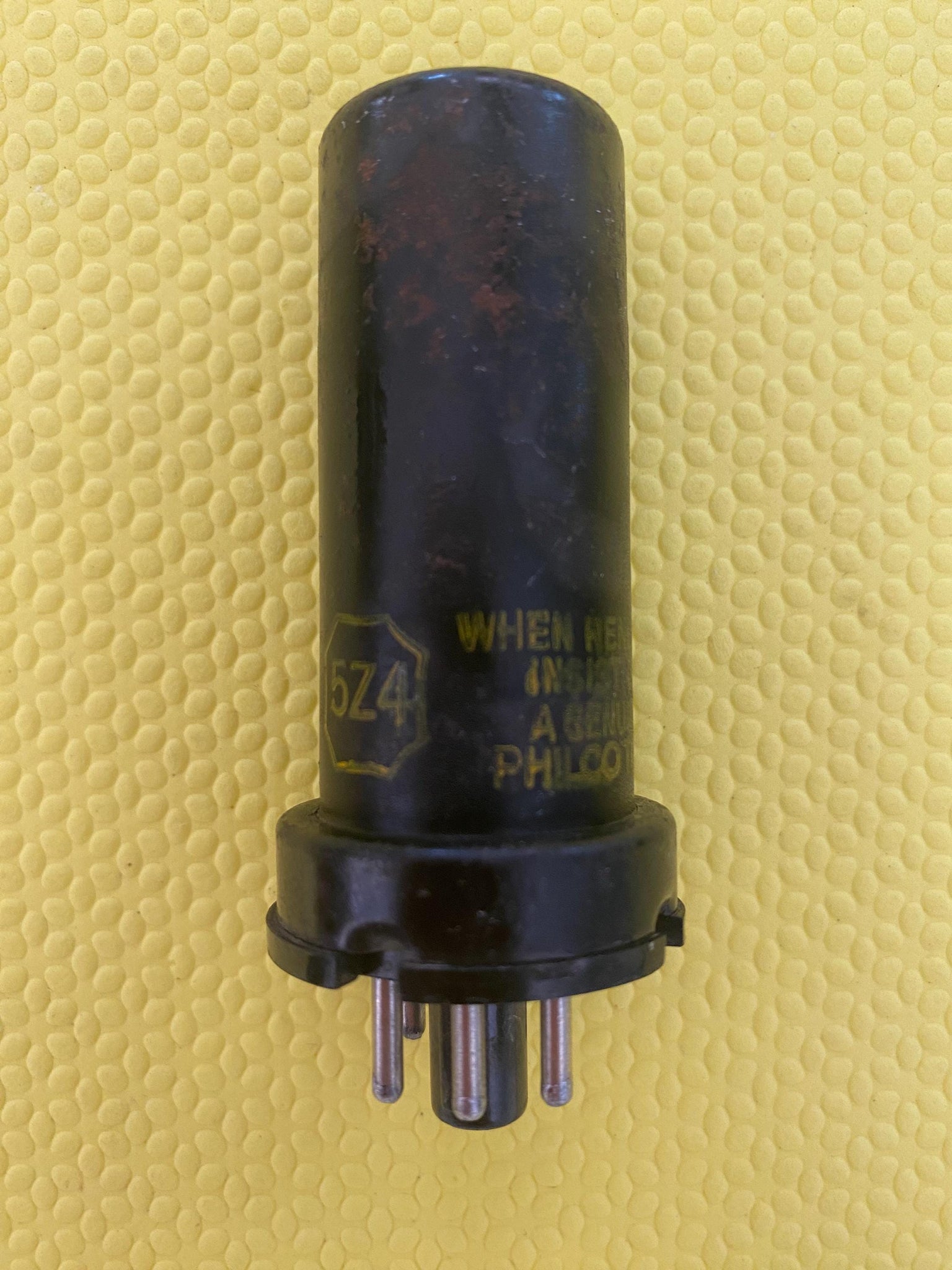 This Philco 5Z4 rectifier tube was tested on our Paul Hart-calibrated TV7/U for shorts, gas and emissions.