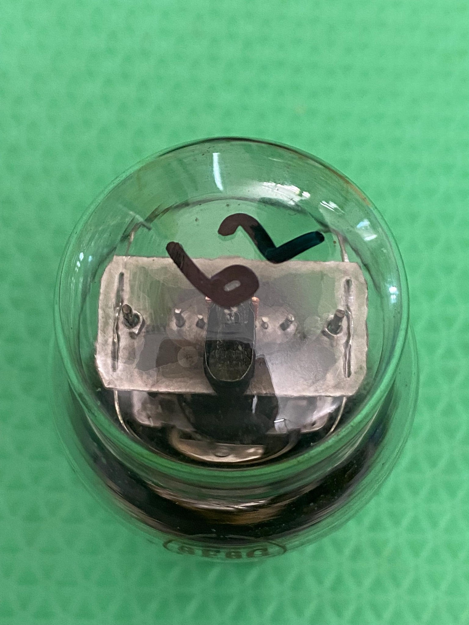 This Philco 6F6G output tube was tested on our Paul Hart-calibrated TV7/U for shorts, gas and transconductance. There were no shorts or gas.