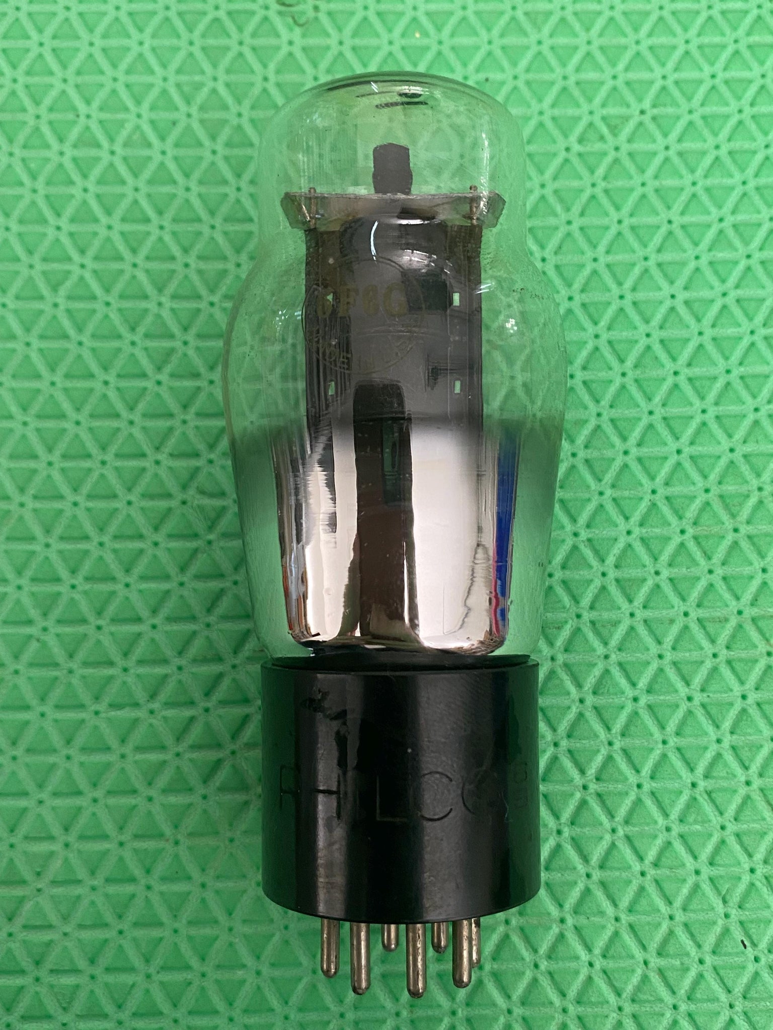 This Philco 6F6G output tube was tested on our Paul Hart-calibrated TV7/U for shorts, gas and transconductance. There were no shorts or gas.