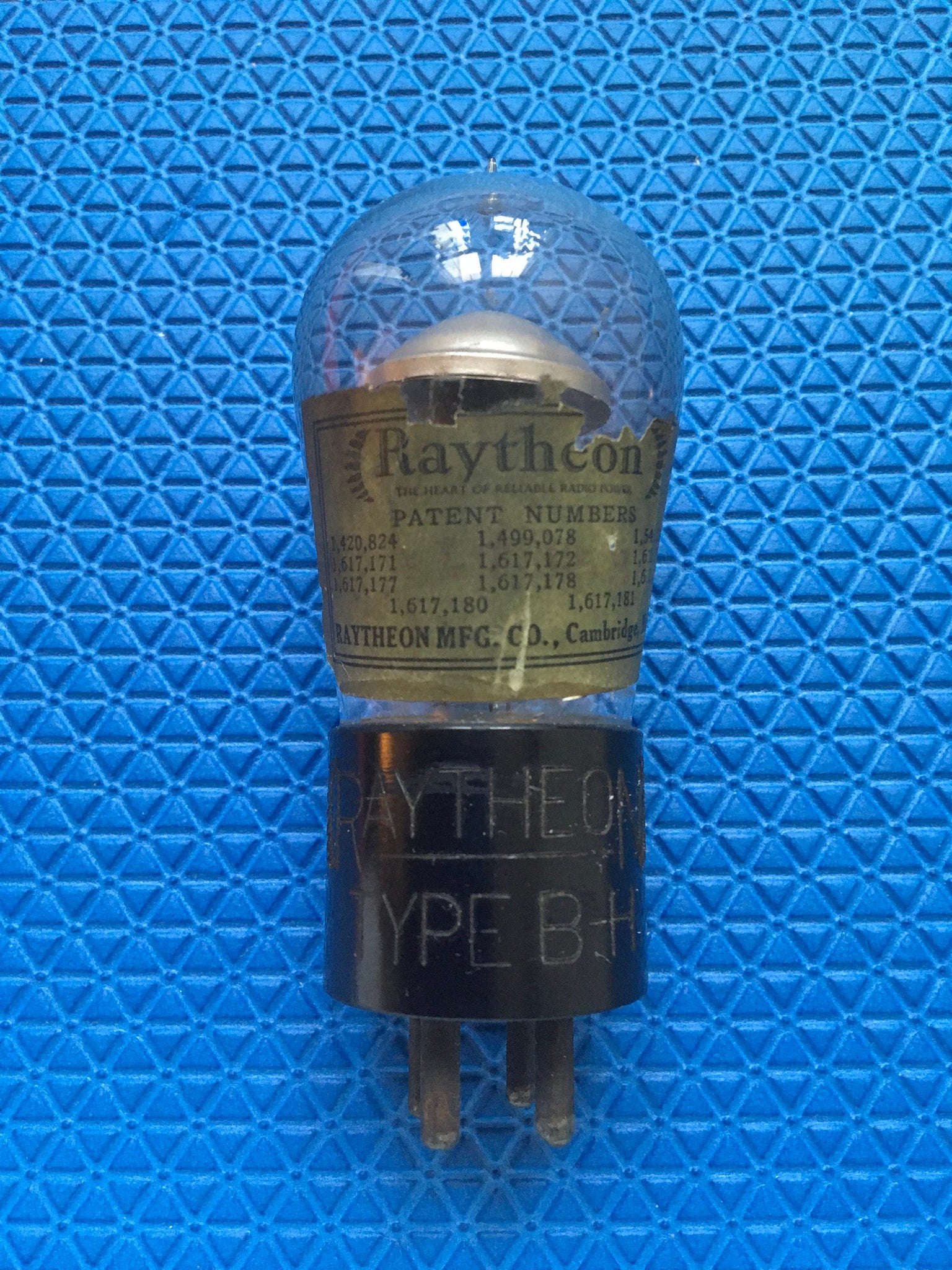 Raytheon Type BH B-H Vacuum Tube Rectifier Old-Fashioned Bottle With Top Evacuation Stem