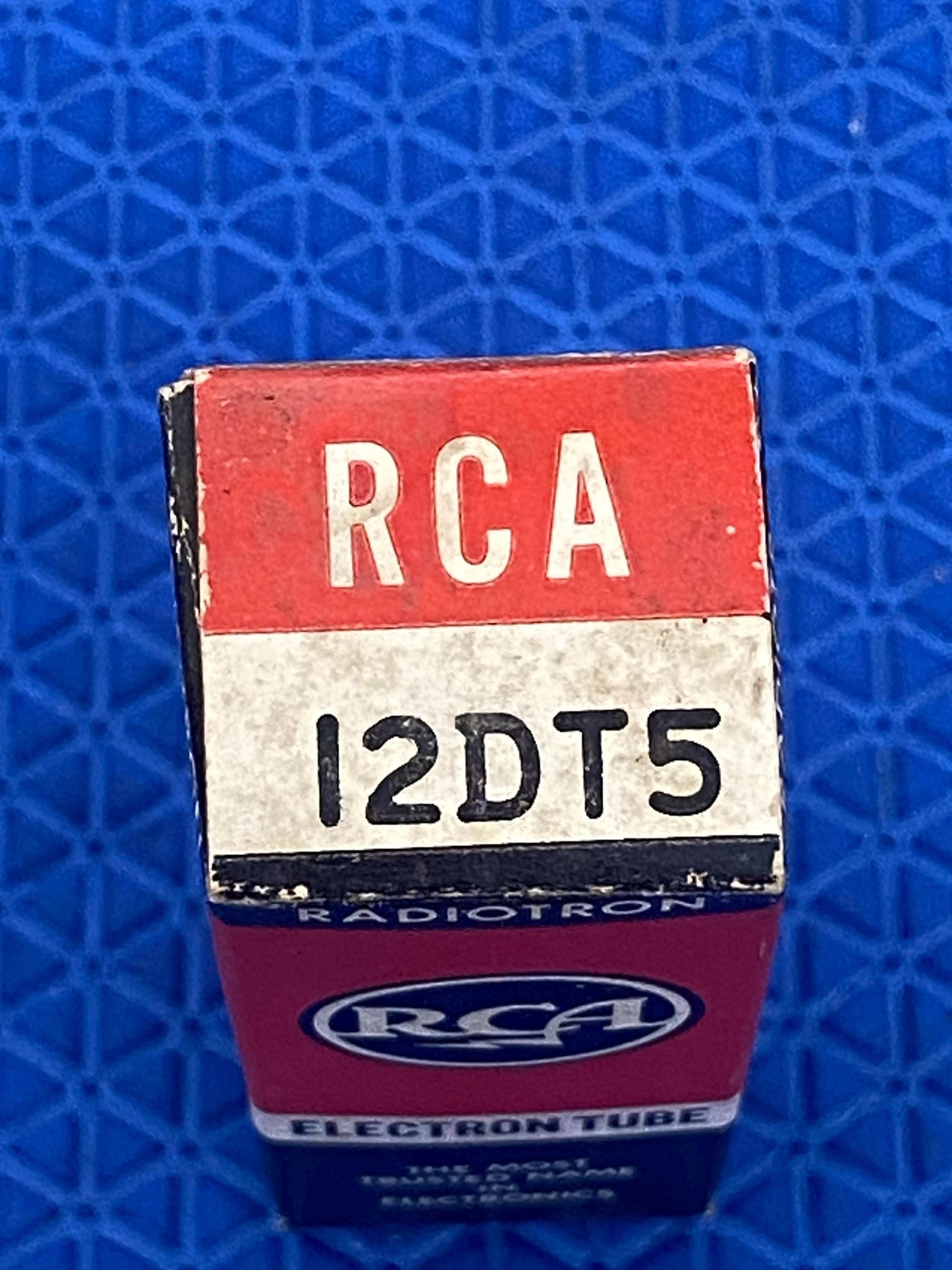 This Canadian RCA 12DT5 tube is new old stock and new in box and tested to spec on our Paul Hart-calibrated TV7/U.