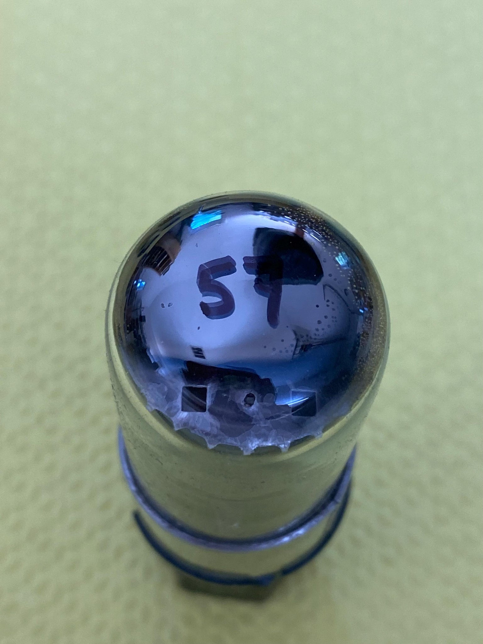 This RCA 12SK7GT tube tested 57 on our Paul Hart-calibrated TV7/U where minimum (65%) is 48.