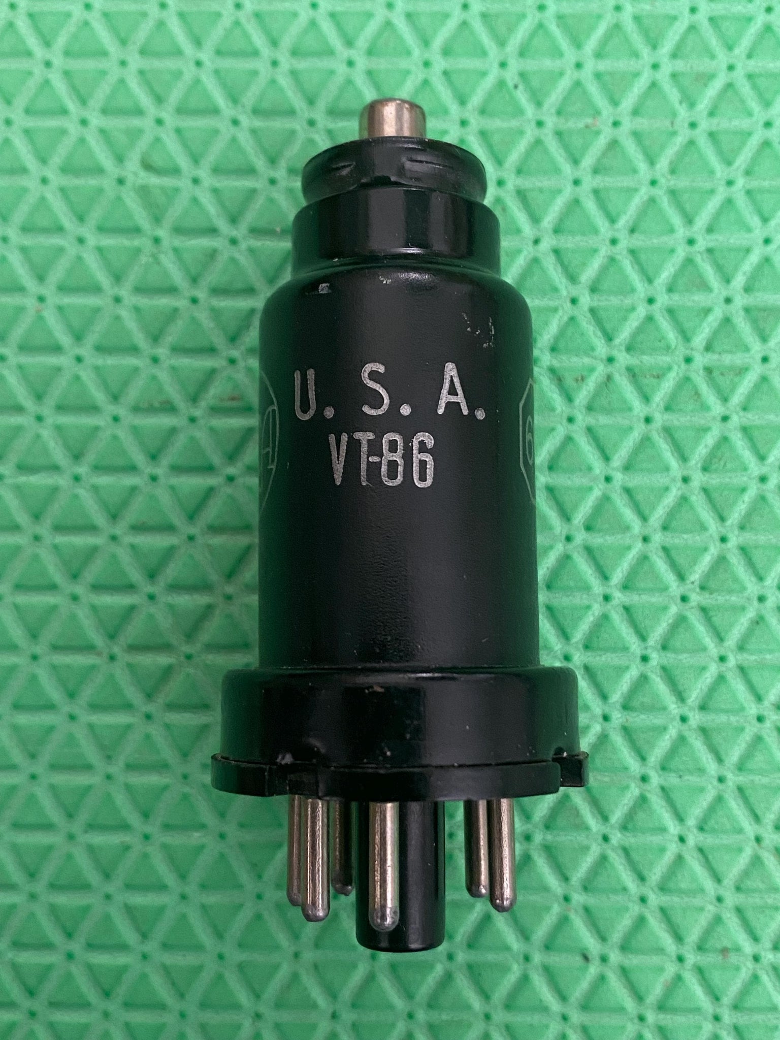 This new old stock-testing, milspec RCA 6K7 / VT-86 tube was tested on our Paul Hart-calibrated TV7/U for shorts, gas and transconductance. There were no shorts or gas.