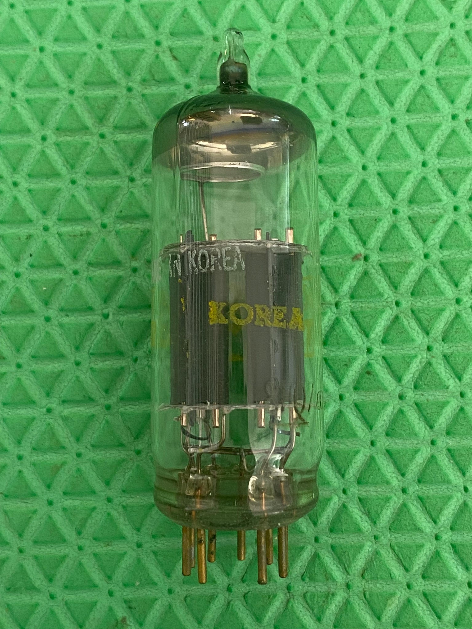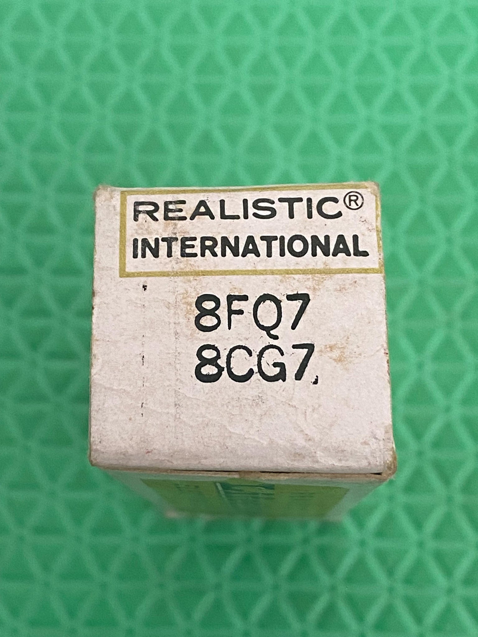 This new old stock, new in box Realistic (Radio Shack) Gold Clad 8FQ7 / 8CG7 tube tested to spec on our Paul Hart-calibrated TV7/U. It was made in Korea.