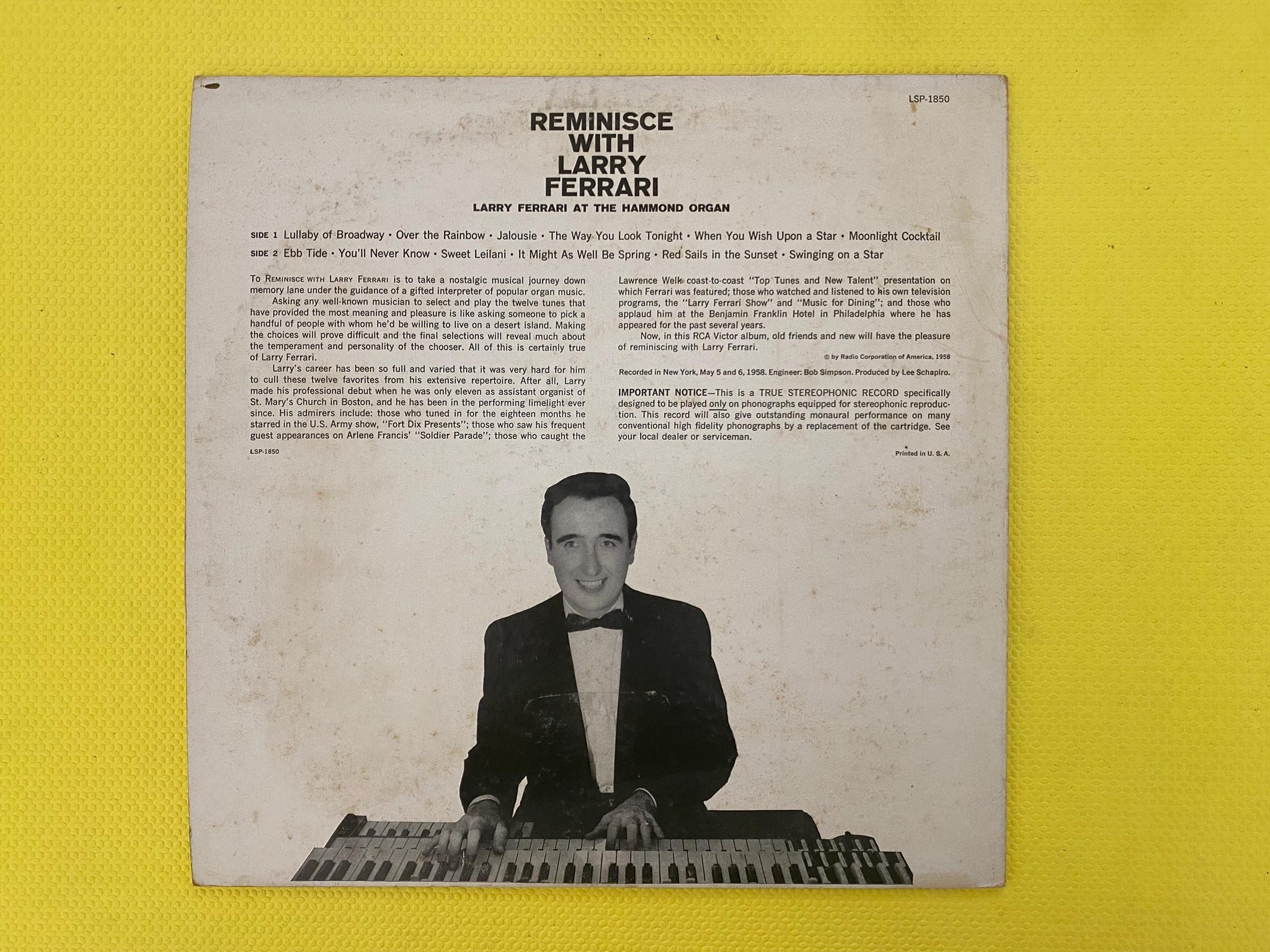 Reminisce With Larry Ferrari RCA Living Stereo Vinyl LP RCA Victor LSP1850