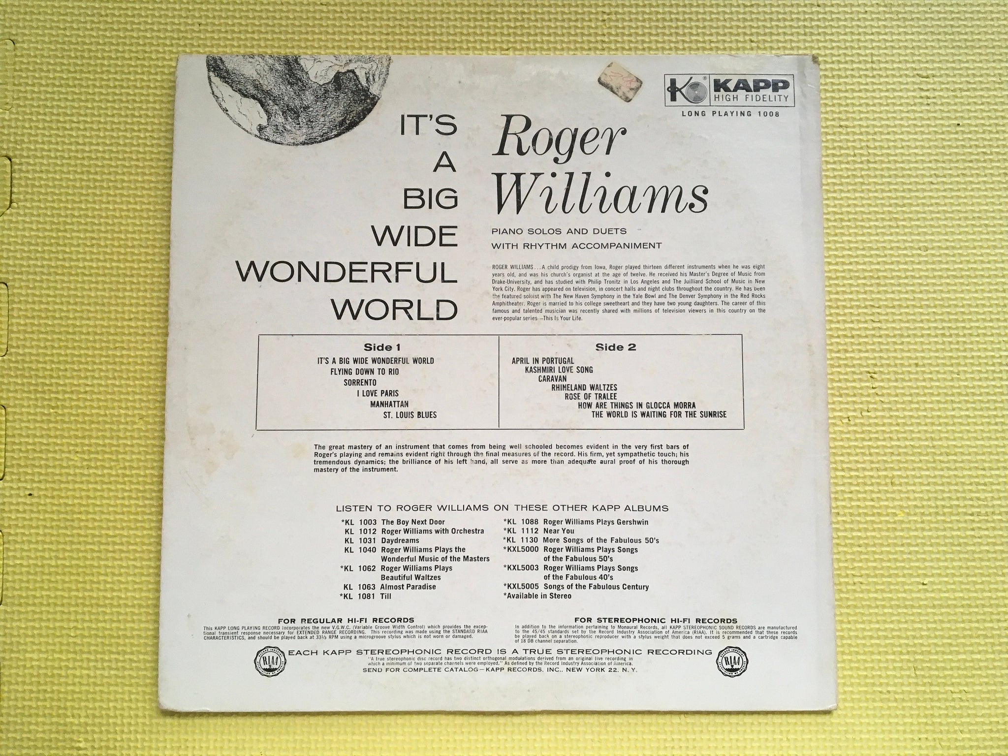 Roger Williams It's A Big, Wide, Wonderful World High Fidelity LP Kapp 1008