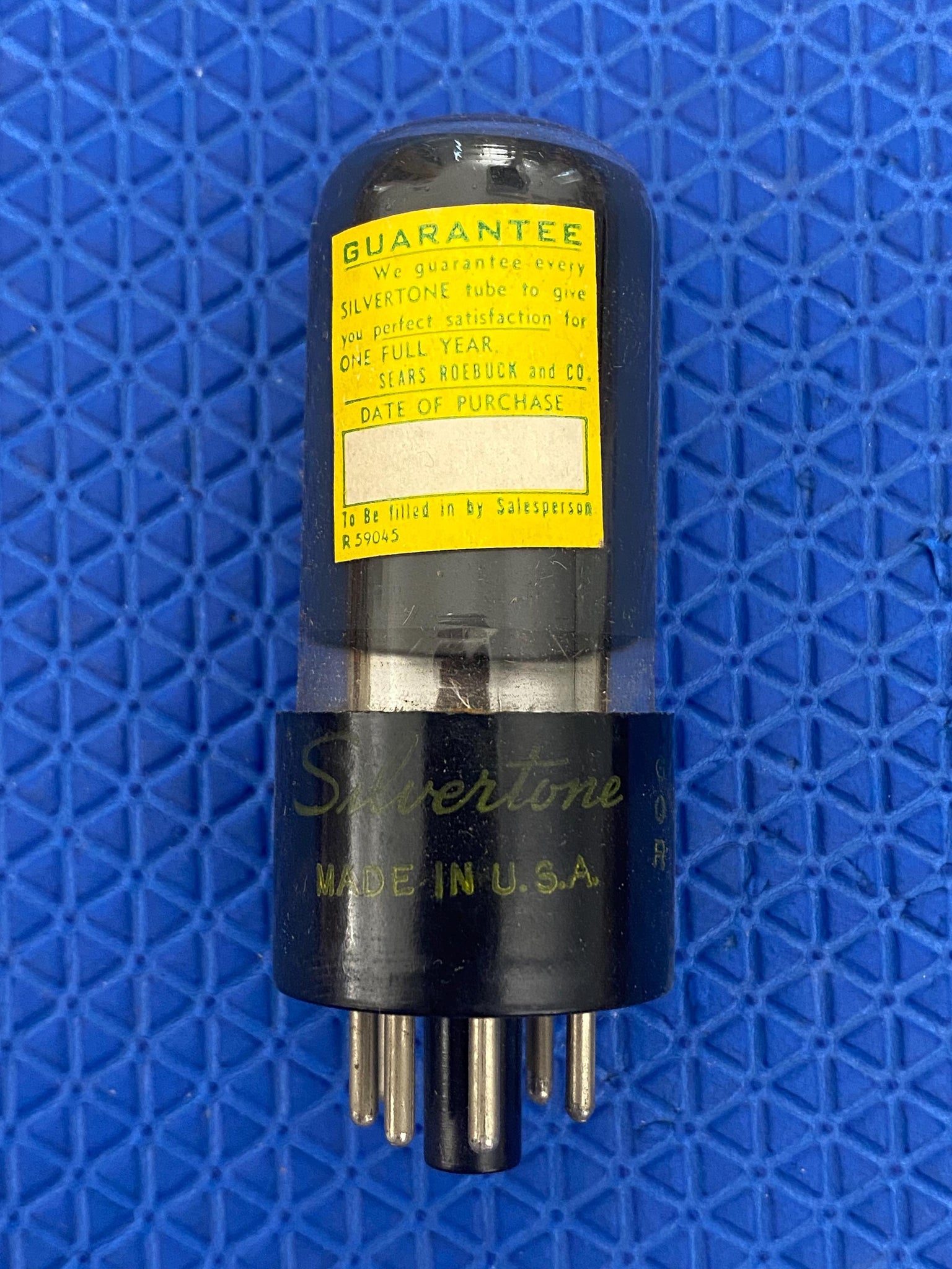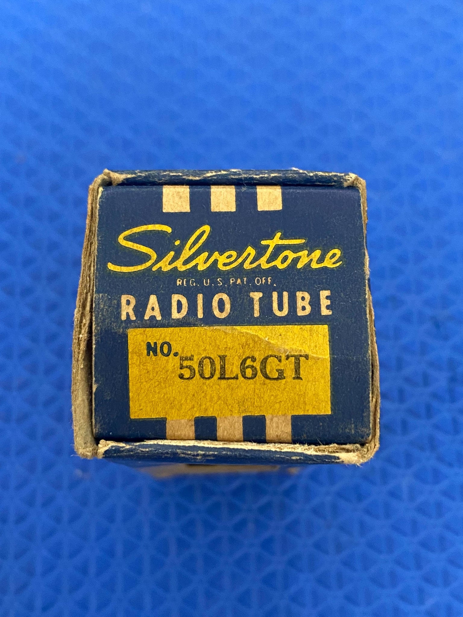This new old stock, new in box Super Silvertone 50L6GT rectifier tube tested to spec on our Paul Hart-calibrated TV7/U.