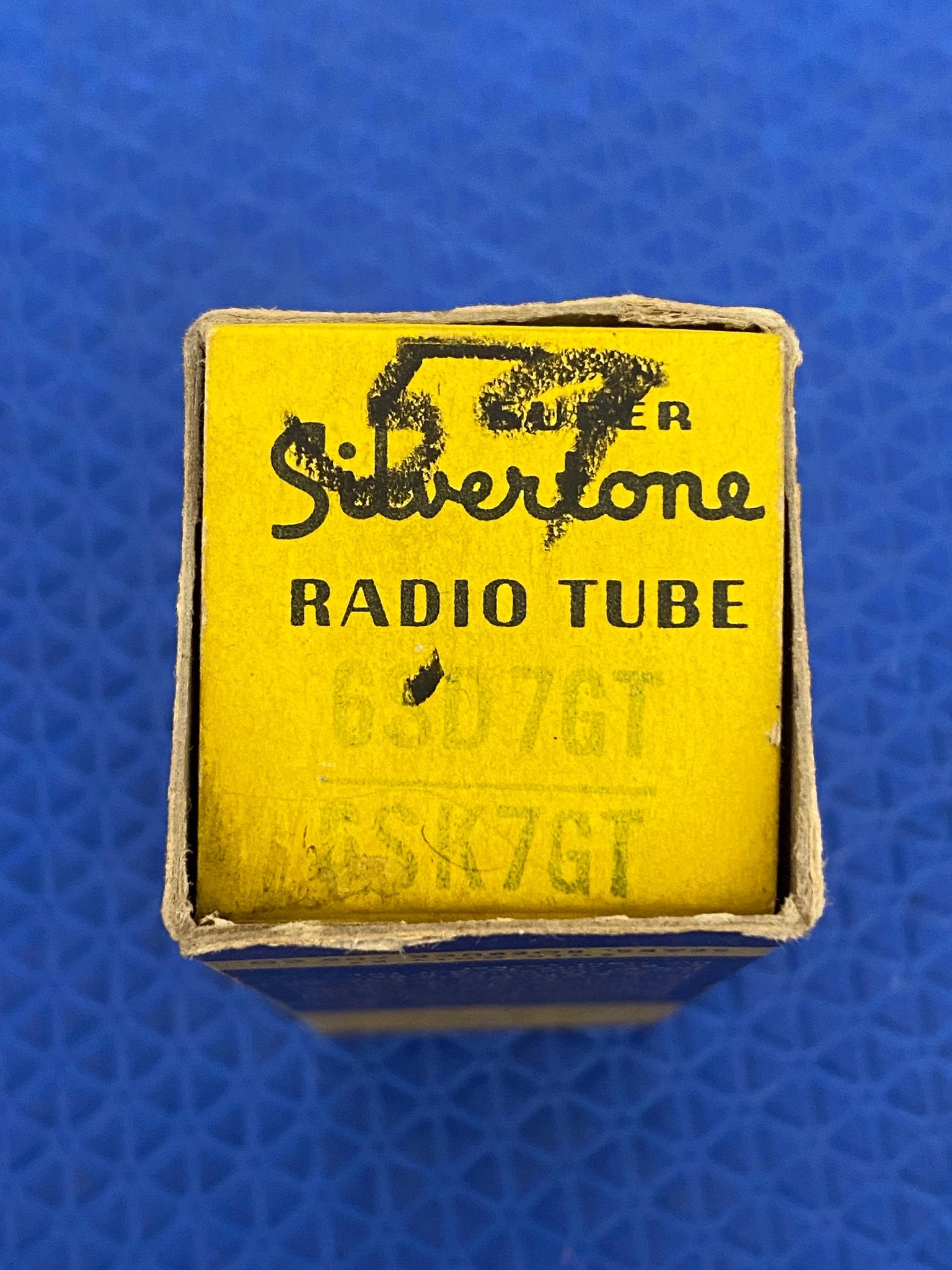 This new old stock, new in box Super Silvertone 6SD7GT pentode tested to spec on our Paul Hart-calibrated TV7/U.