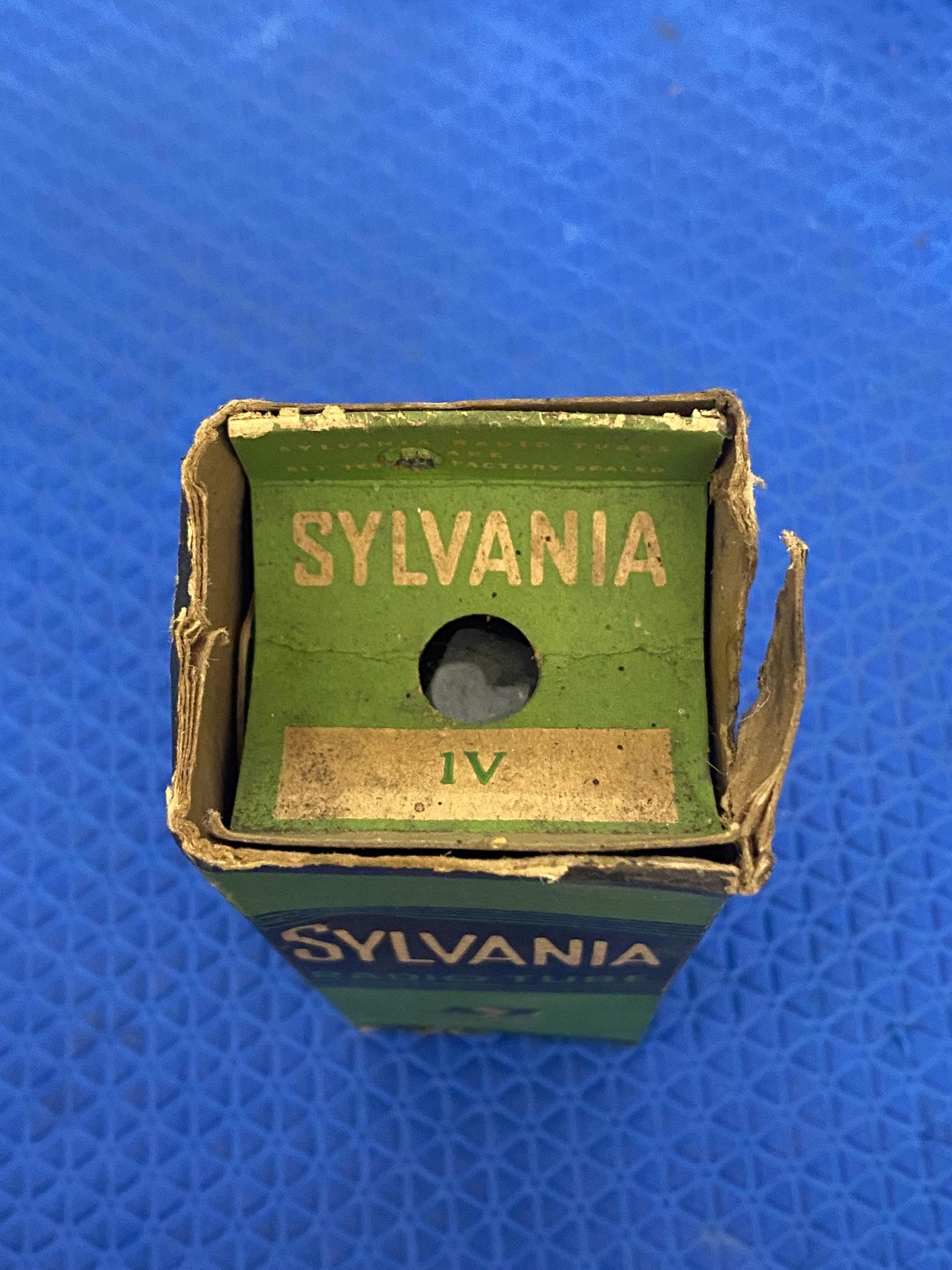 This new old stock, new in box Sylvania 1-V / 6Z3 tube tested to spec on our Paul Hart-calibrated TV7/U.