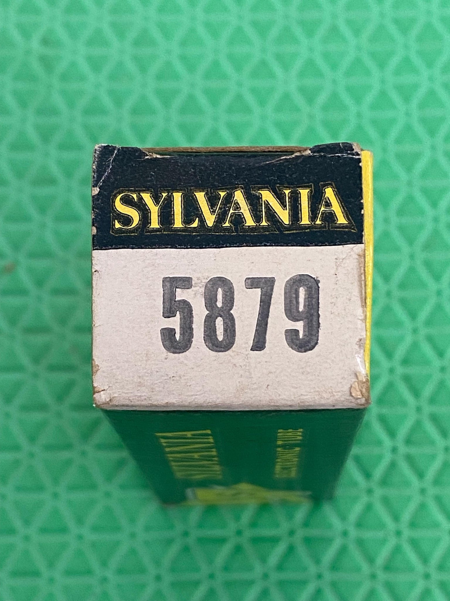 This new old stock, new in box Sylvania 5879 tube tested to spec on our TV7/U.