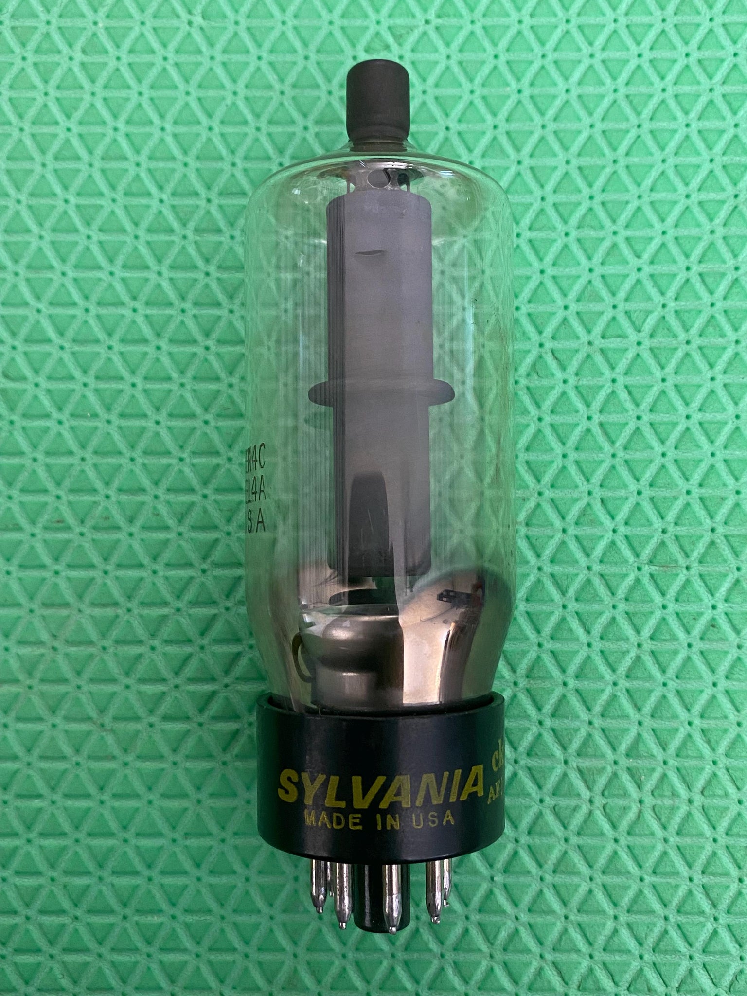 This new old stock, new in box Sylvania 6BK4C / 6EL4A regulator tube tested to spec on our Paul Hart-calibrated TV7/U.