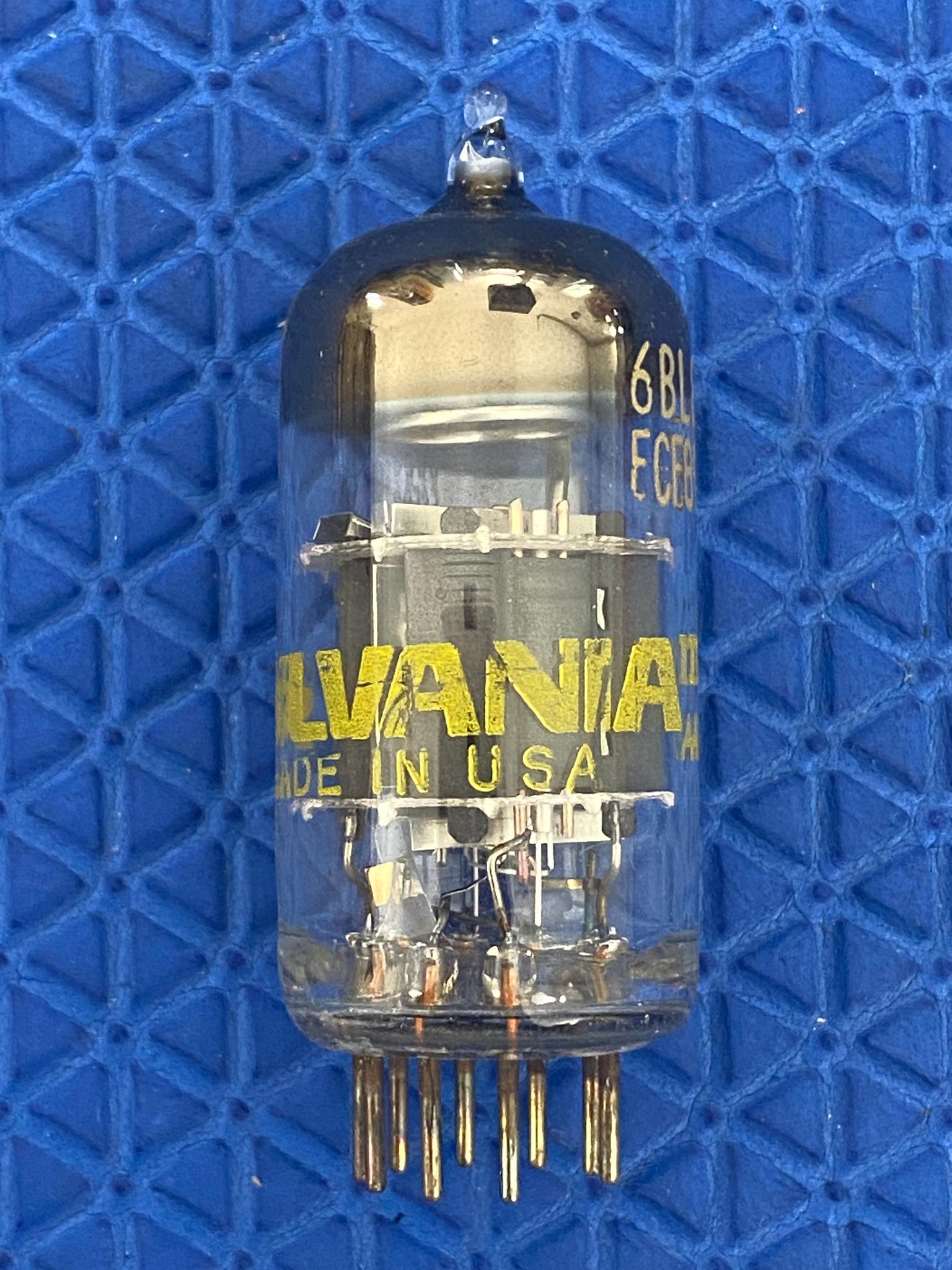 This new old stock, new in box Sylvania 6BL8 / ECF80 tube tested to spec on our Paul Hart-calibrated TV7/U. It was made in the USA.