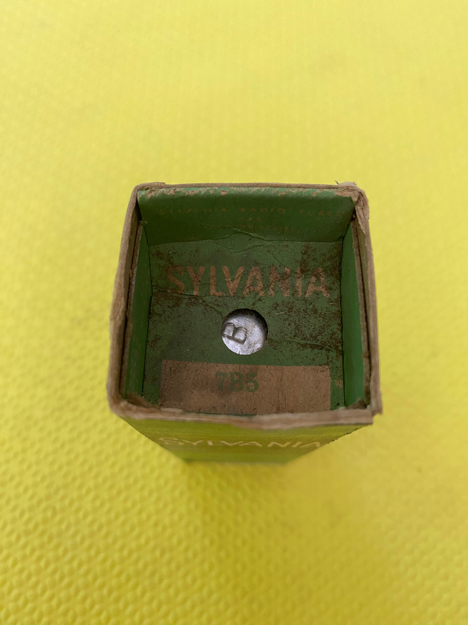 This new old stock, new in box Sylvania 7B5 tube tested to spec on our Paul Hart-calibrated TV7/U.