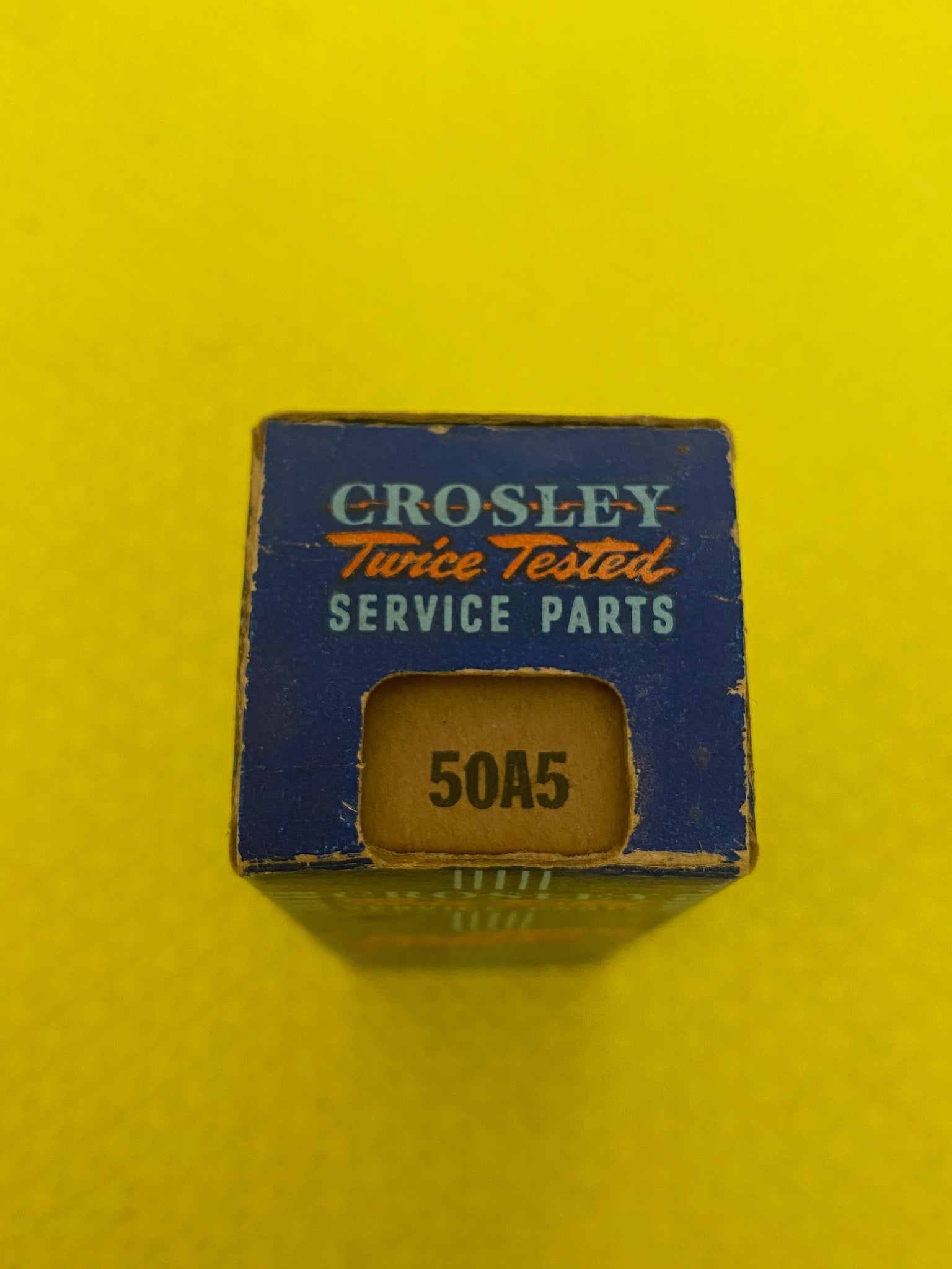 This Sylvania-MANUFACTURED, Crosley-BRANDED 50A5 tube tested to spec on our Paul Hart-calibrated TV7/U.