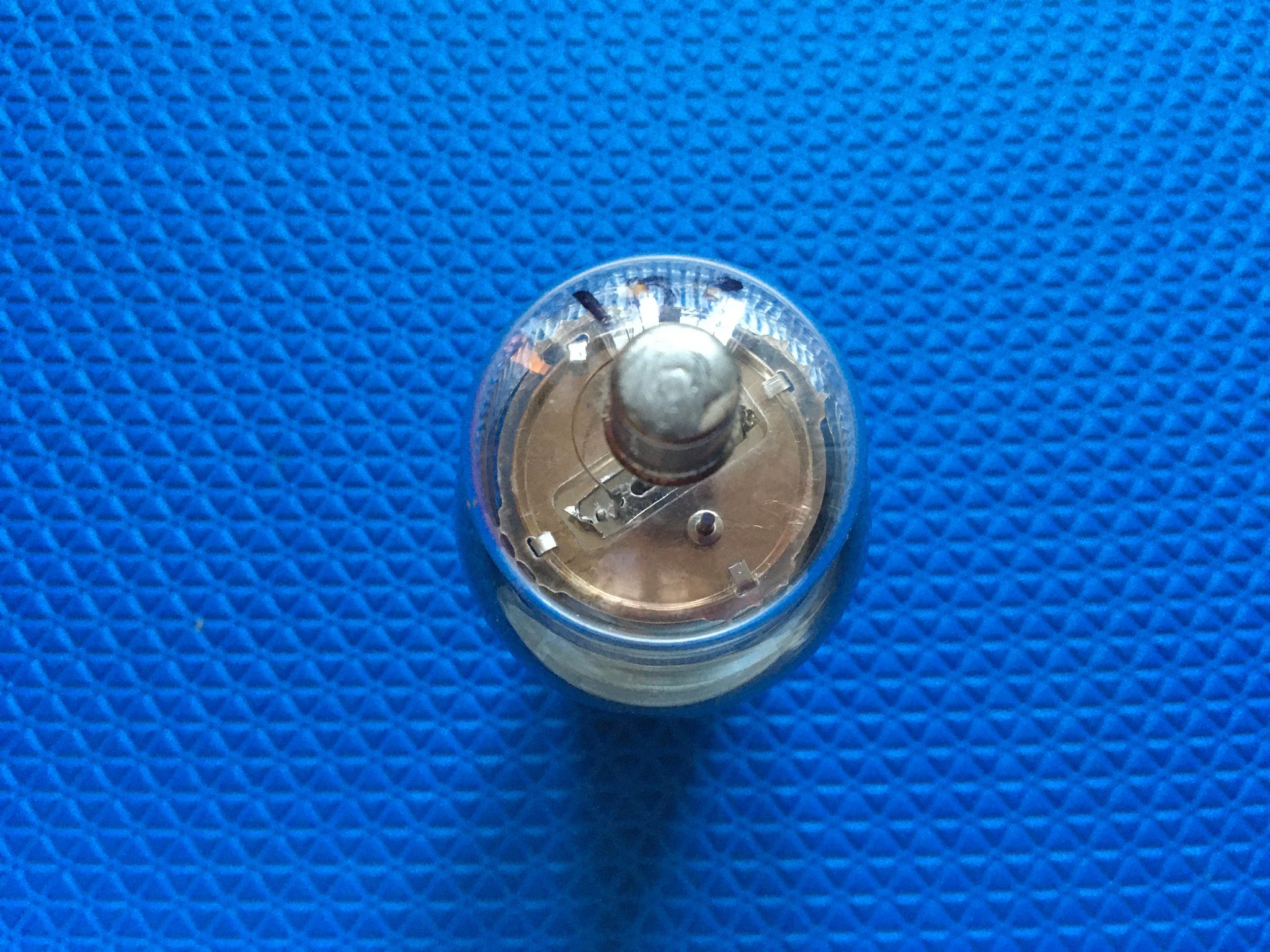 This tube has a round mica spacer; a dimple sheet getter and a B4 date code.