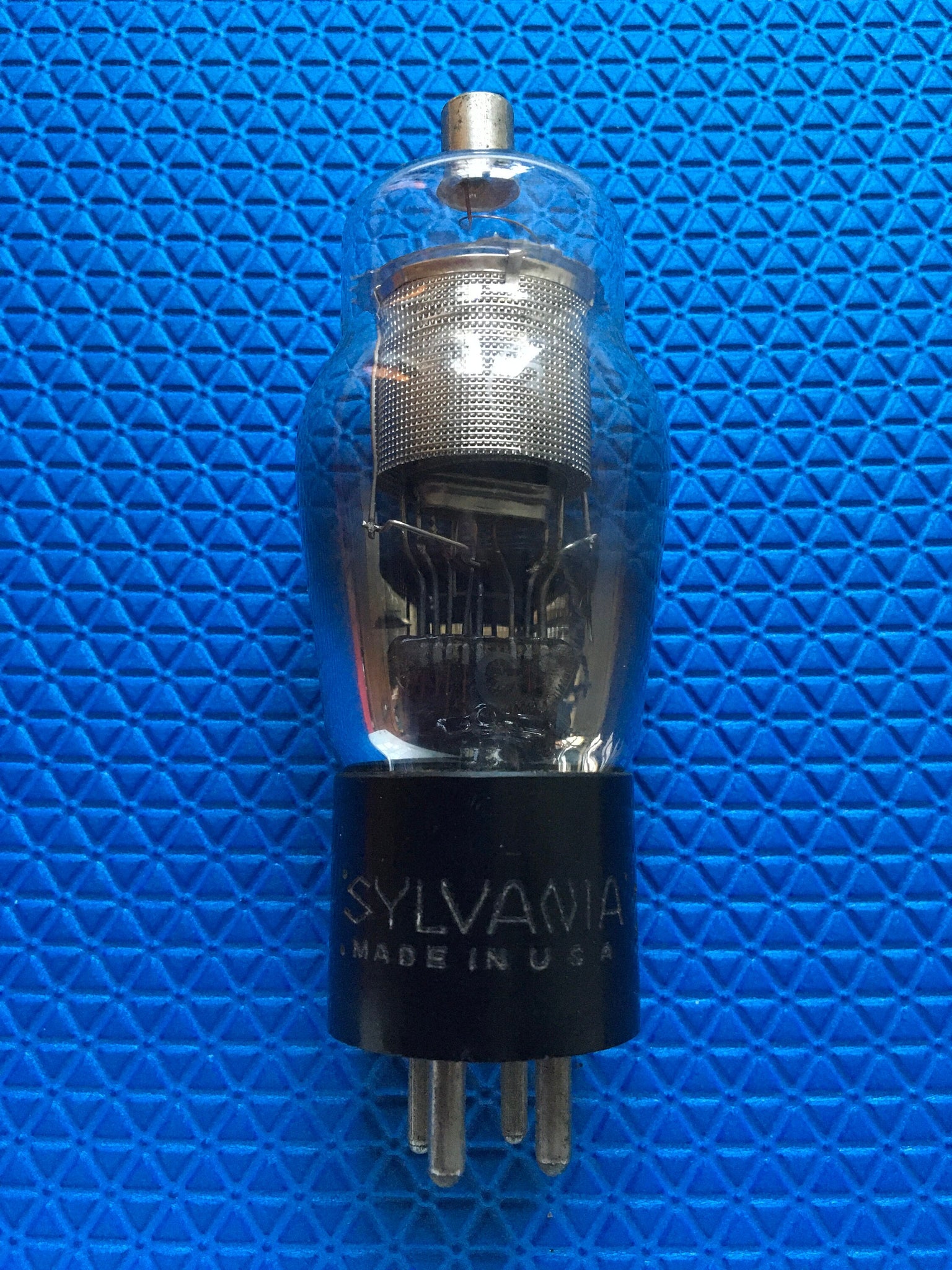 This new old stock-testing Sylvania 34 was tested on our Jackson 648 for shorts, gas and transconductance. There were no shorts or gas.