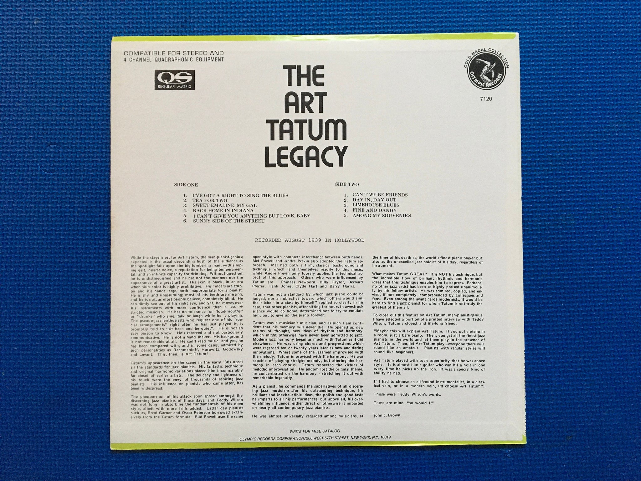 The Art Tatum Legacy Olympic Records Stereo LP 7120