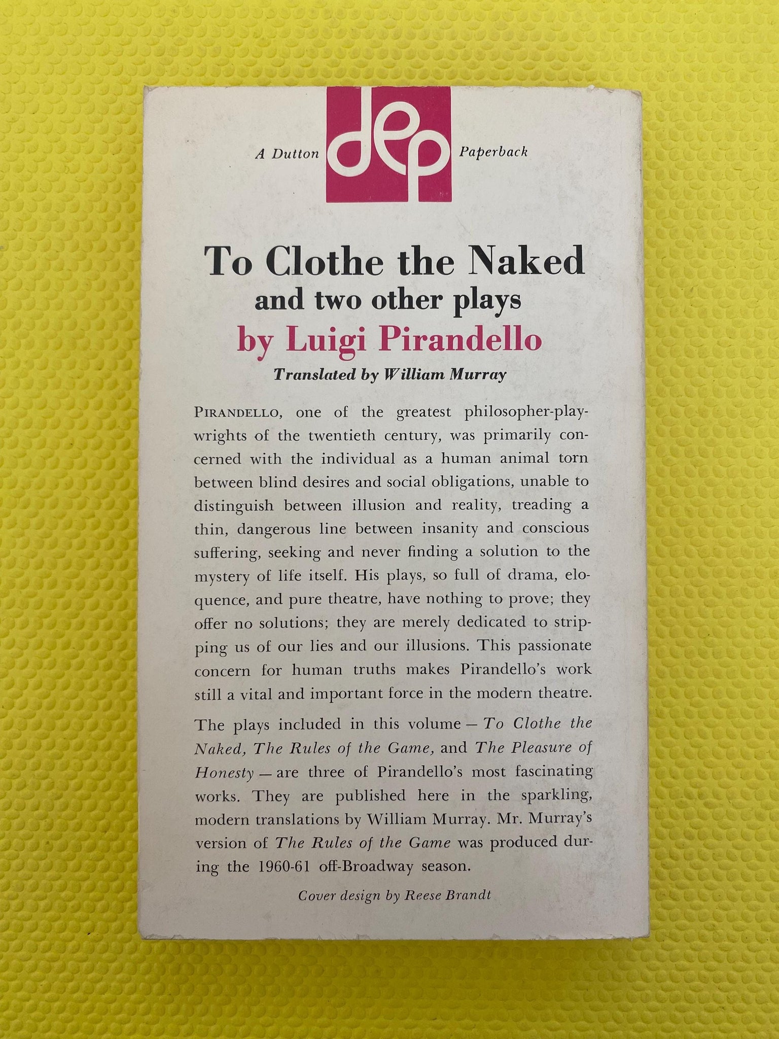 To Clothe The Naked And Two Other Plays Luigi Pirandello Dutton Paperback 1962
