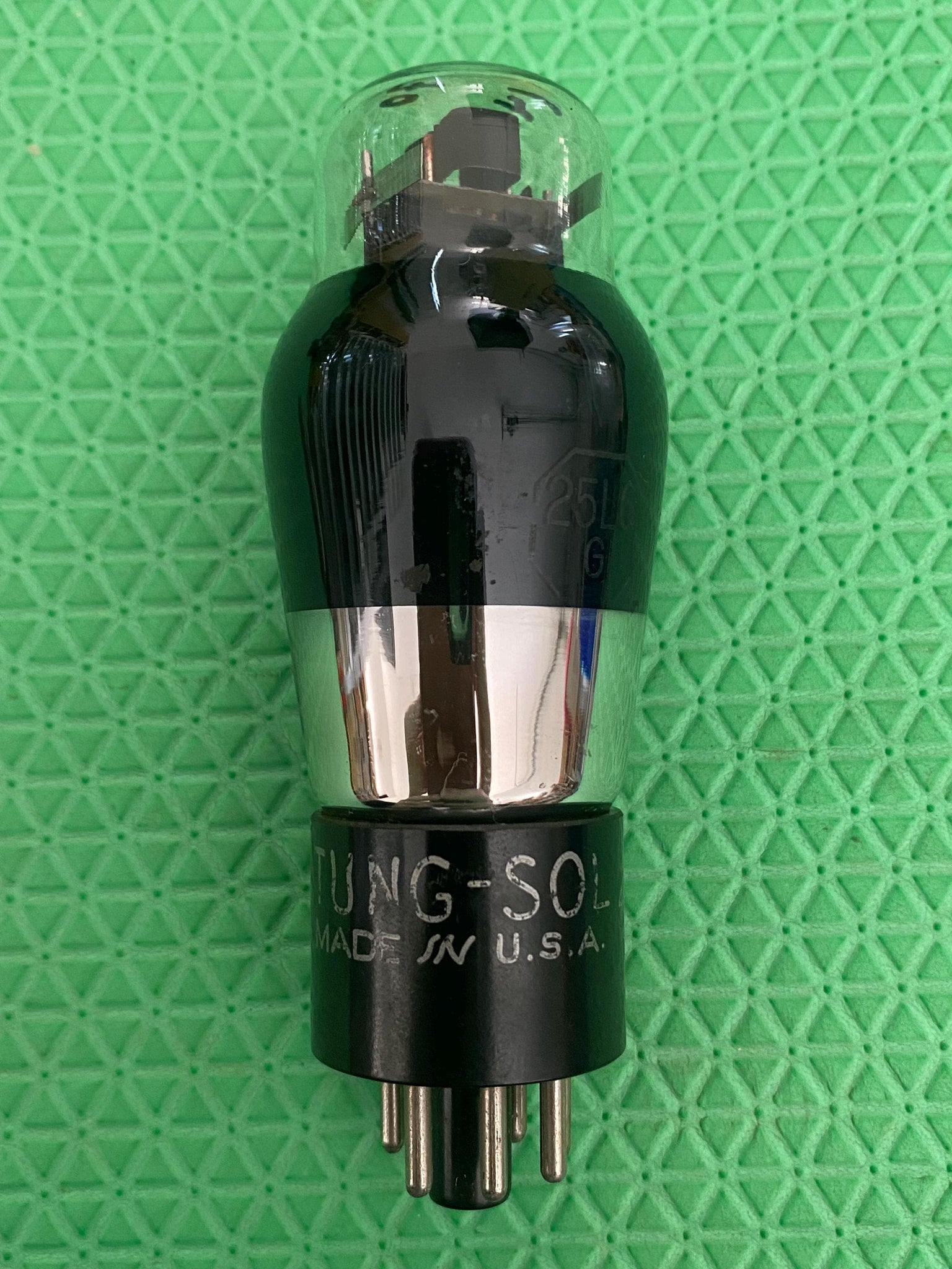 This new old stock-testing Tung-Sol 25L6G tested at 70 on our Paul Hart-calibrated TV7/U where minimum (65%) is 45.