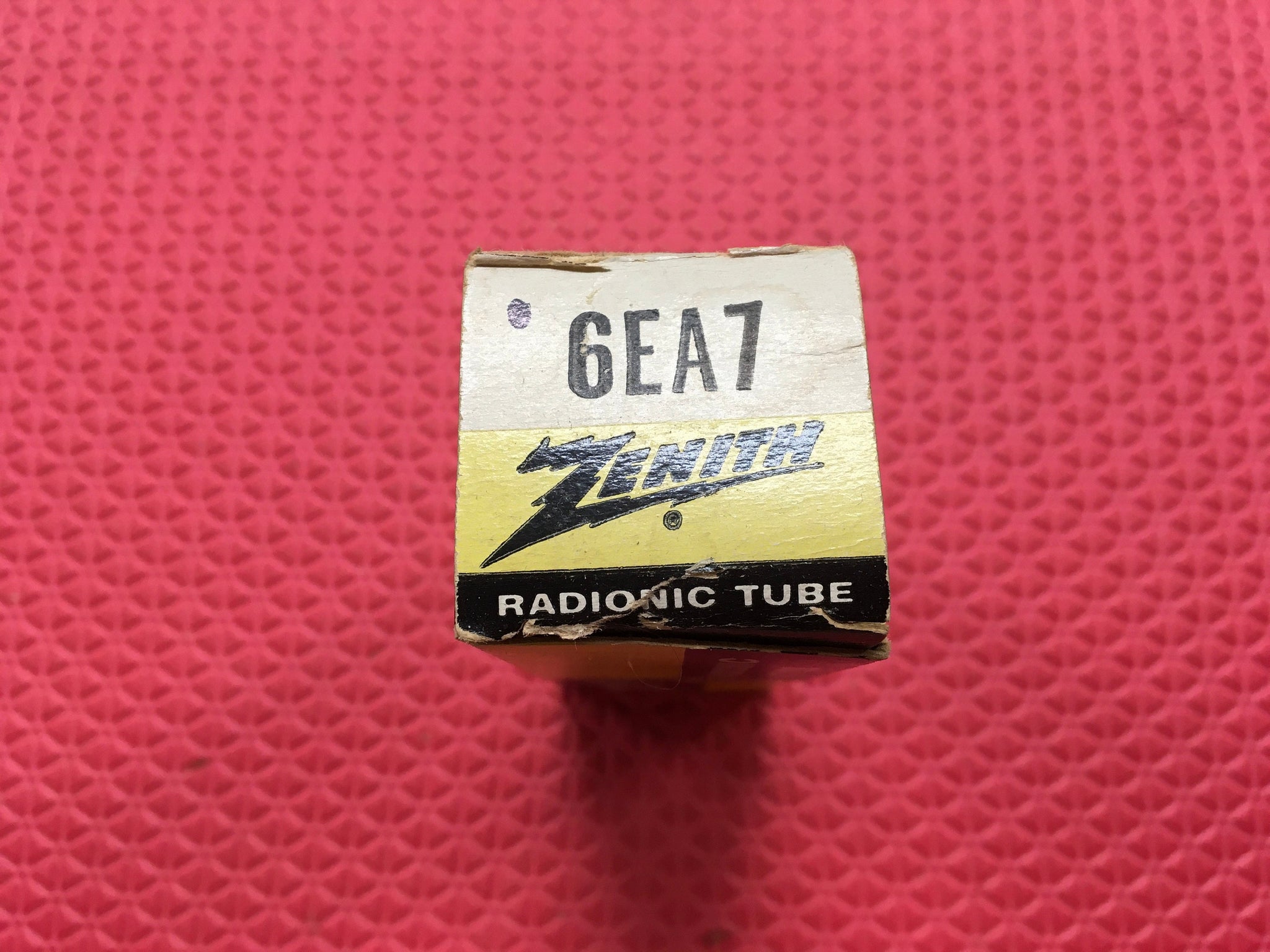 This new old stock, new in box Zenith 6EA7 tube tested to spec on our Paul Hart-calibrated TV7/U.