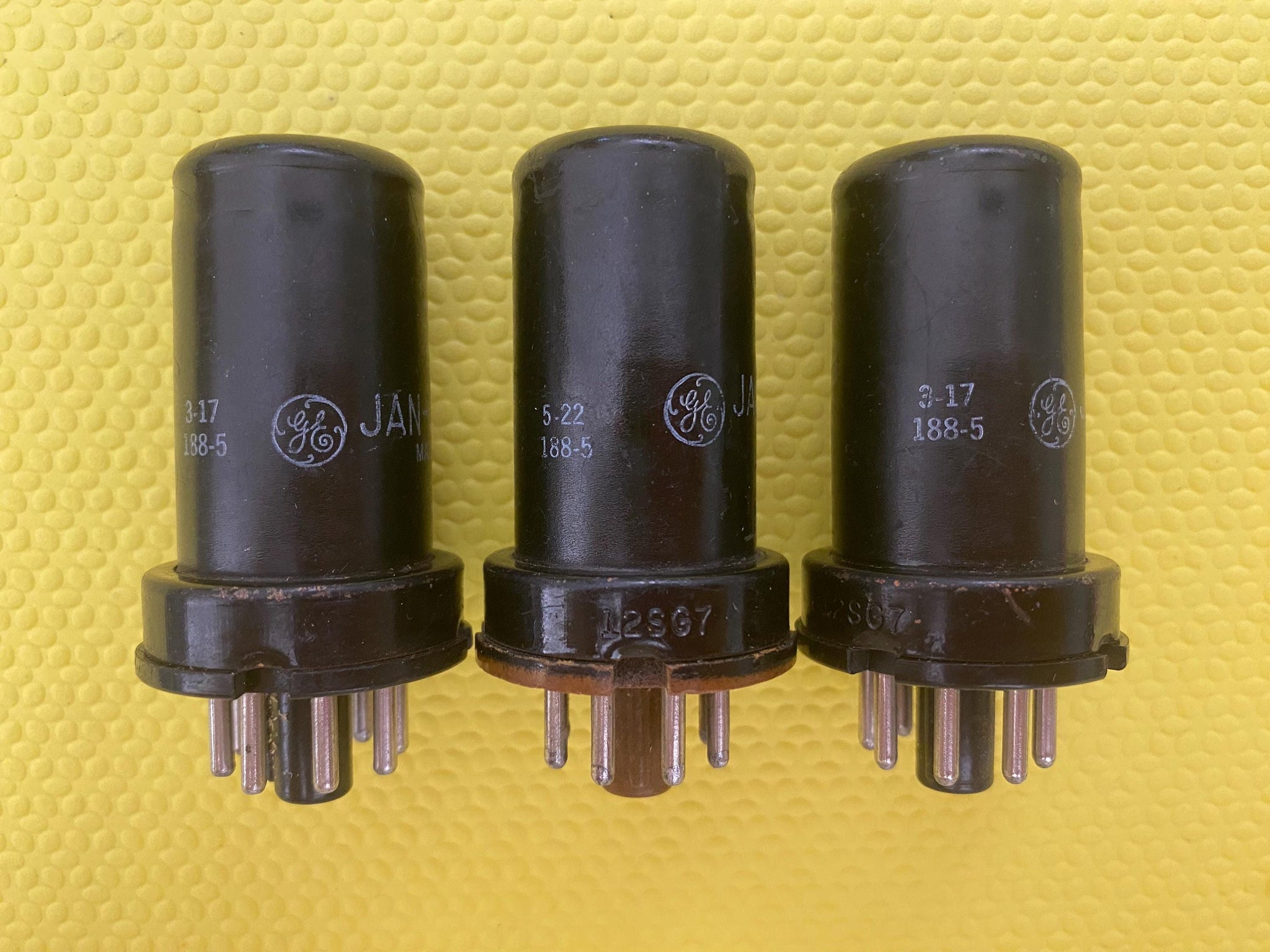3 General Electric GE 12SG7 JAN-CG-12SG7 Vacuum Tubes Valves Milspec Lot Of Three