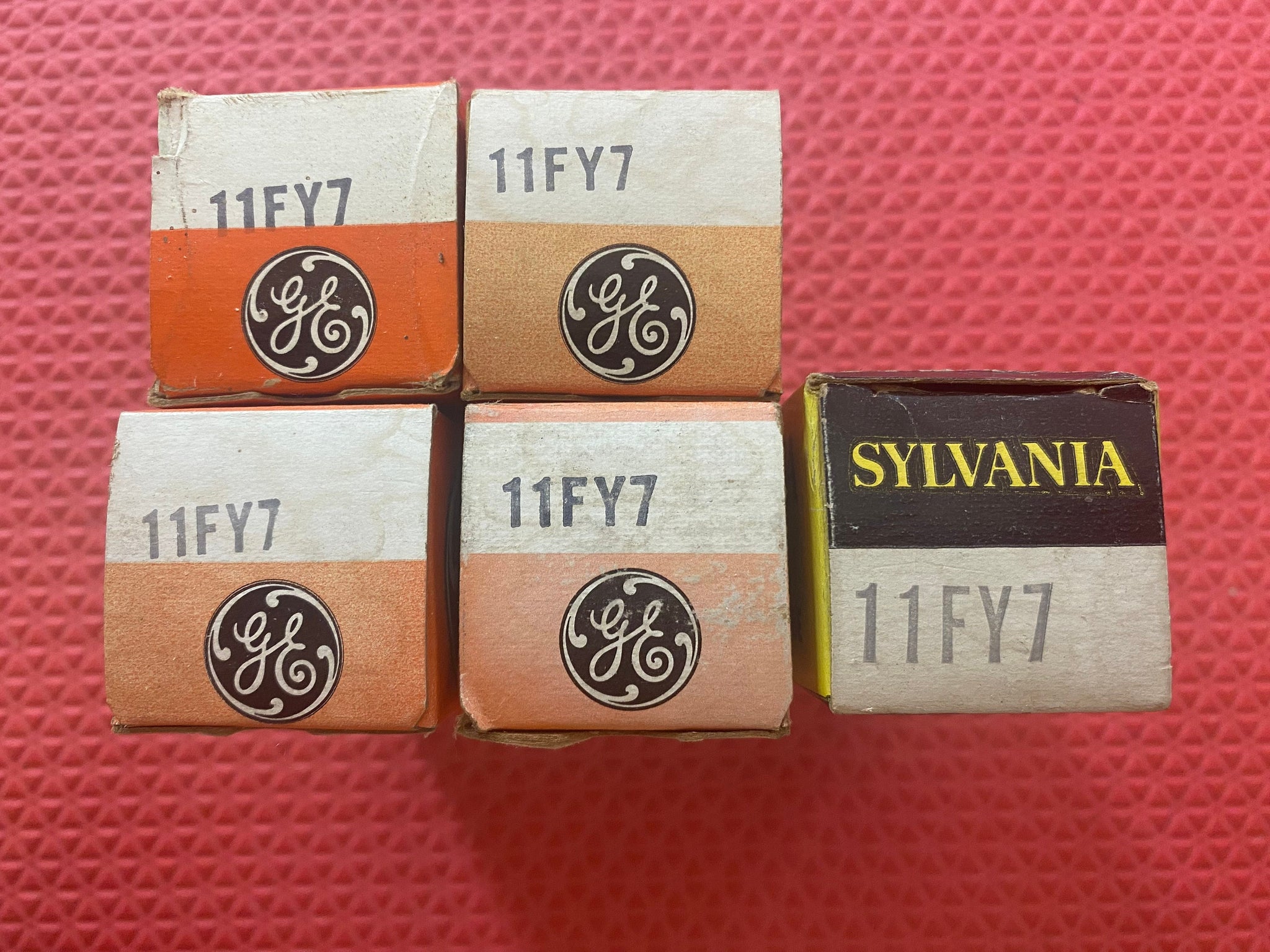 These five new old stock, new in box 11FY7 tubes tested to spec on our Paul Hart-calibrated TV7/U.